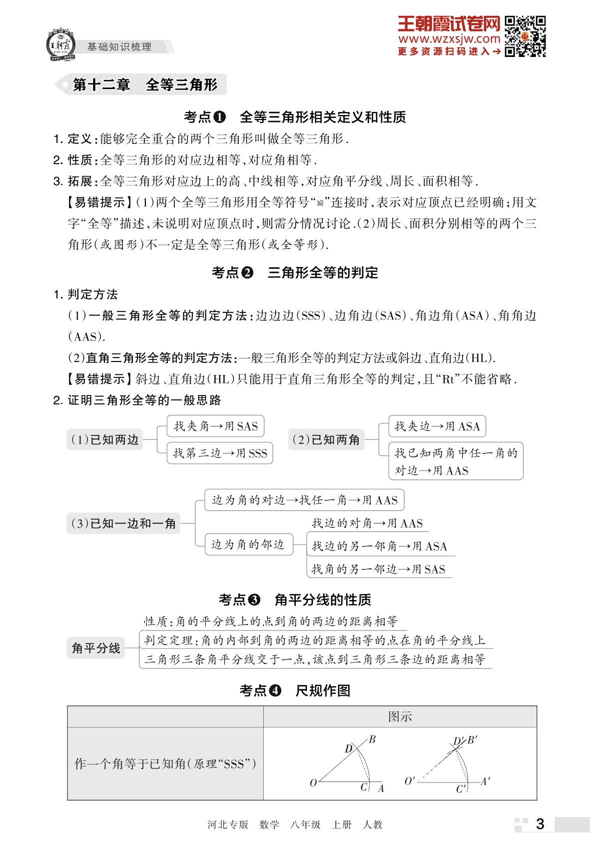 王朝霞期末知识梳理——第十二章 全等三角形八年级上册数学(人教版)_R221125121103977