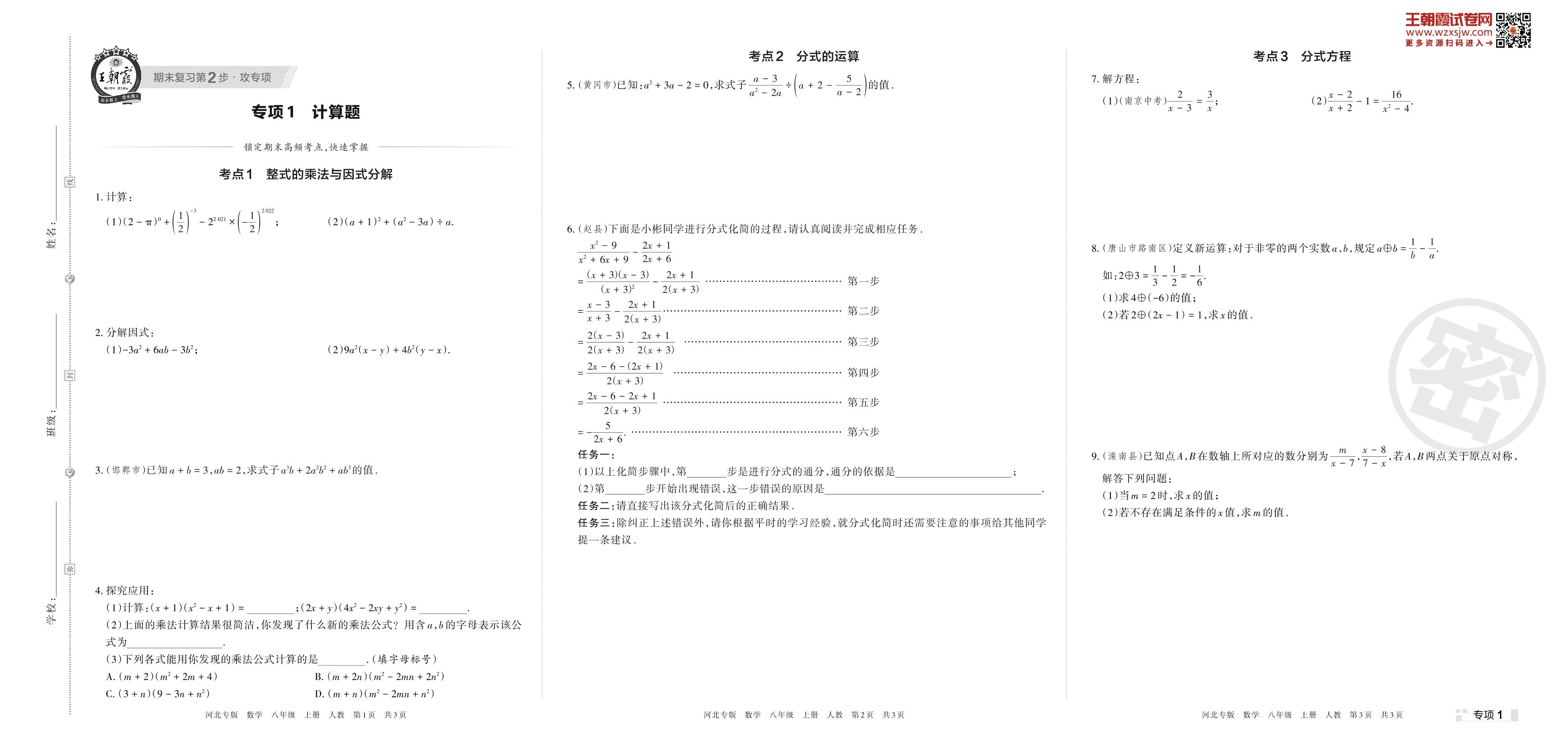 王朝霞期末专项卷——计算题八年级上册数学(人教版)_R221125121103538【1】