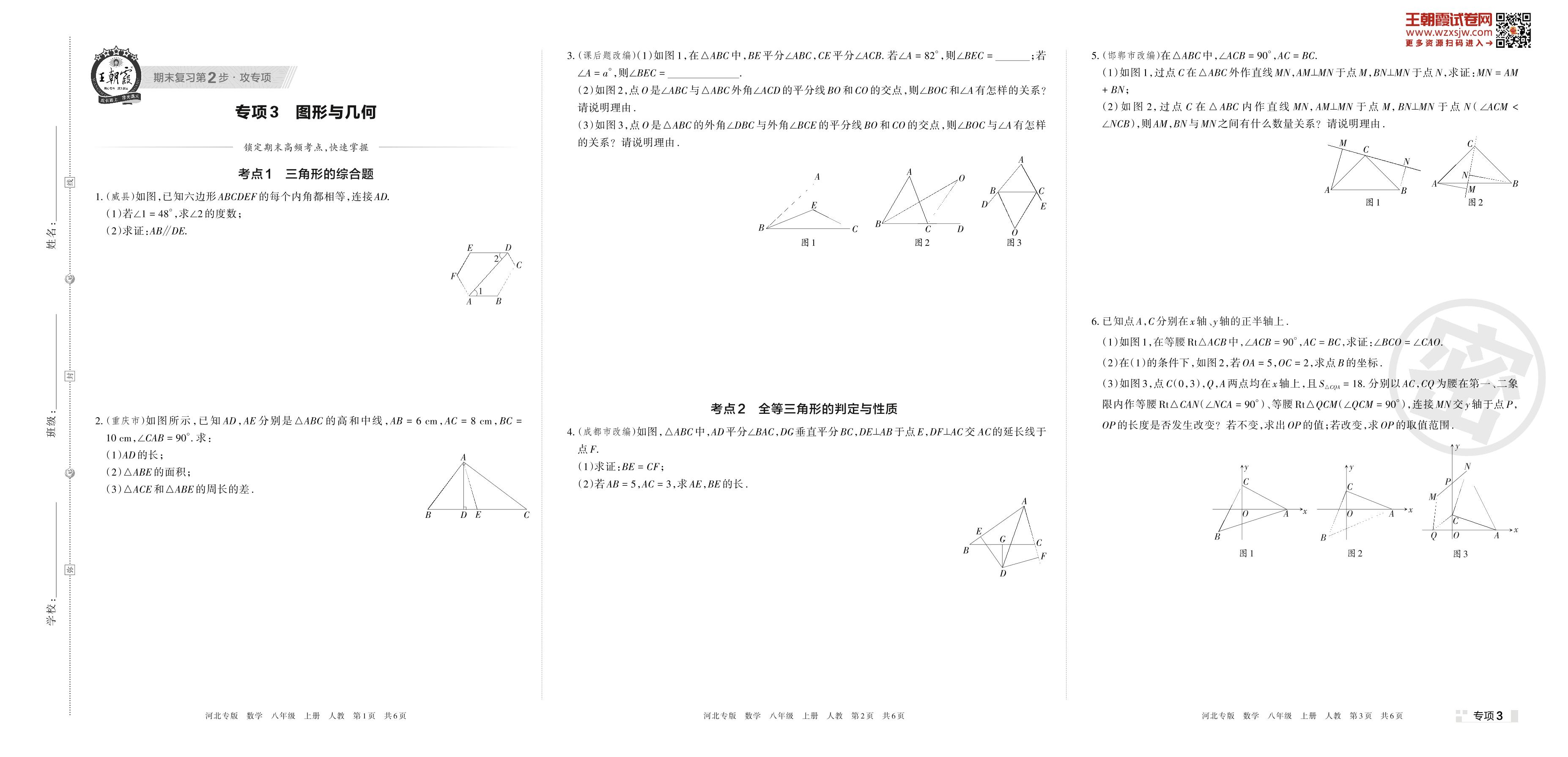 王朝霞期末专项卷——图形与几何八年级上册数学(人教版)_R221125121104692【3】