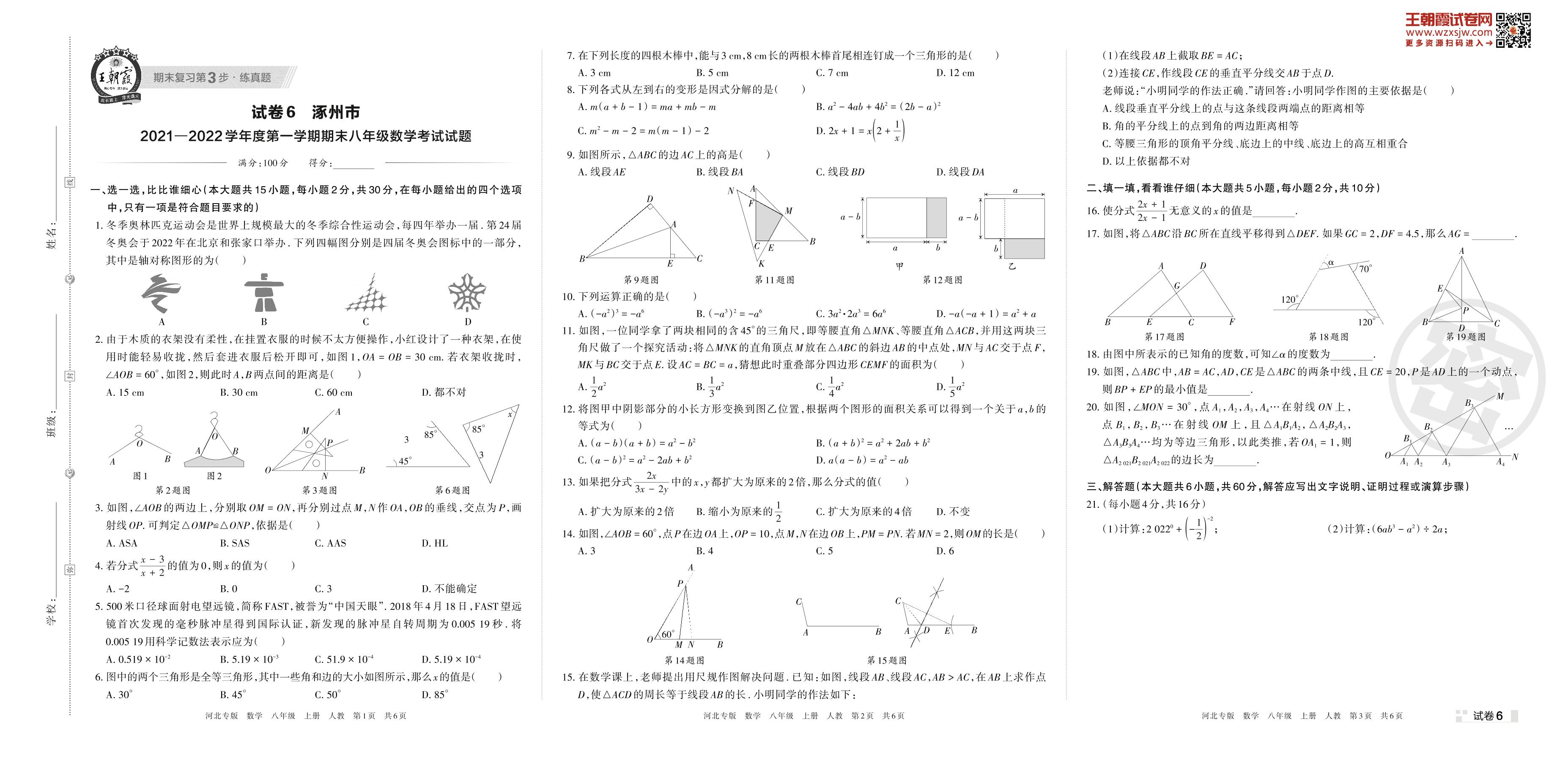涿州市2021—2022学年度第一学期期末八年级数学考试试题(人教版)【6】