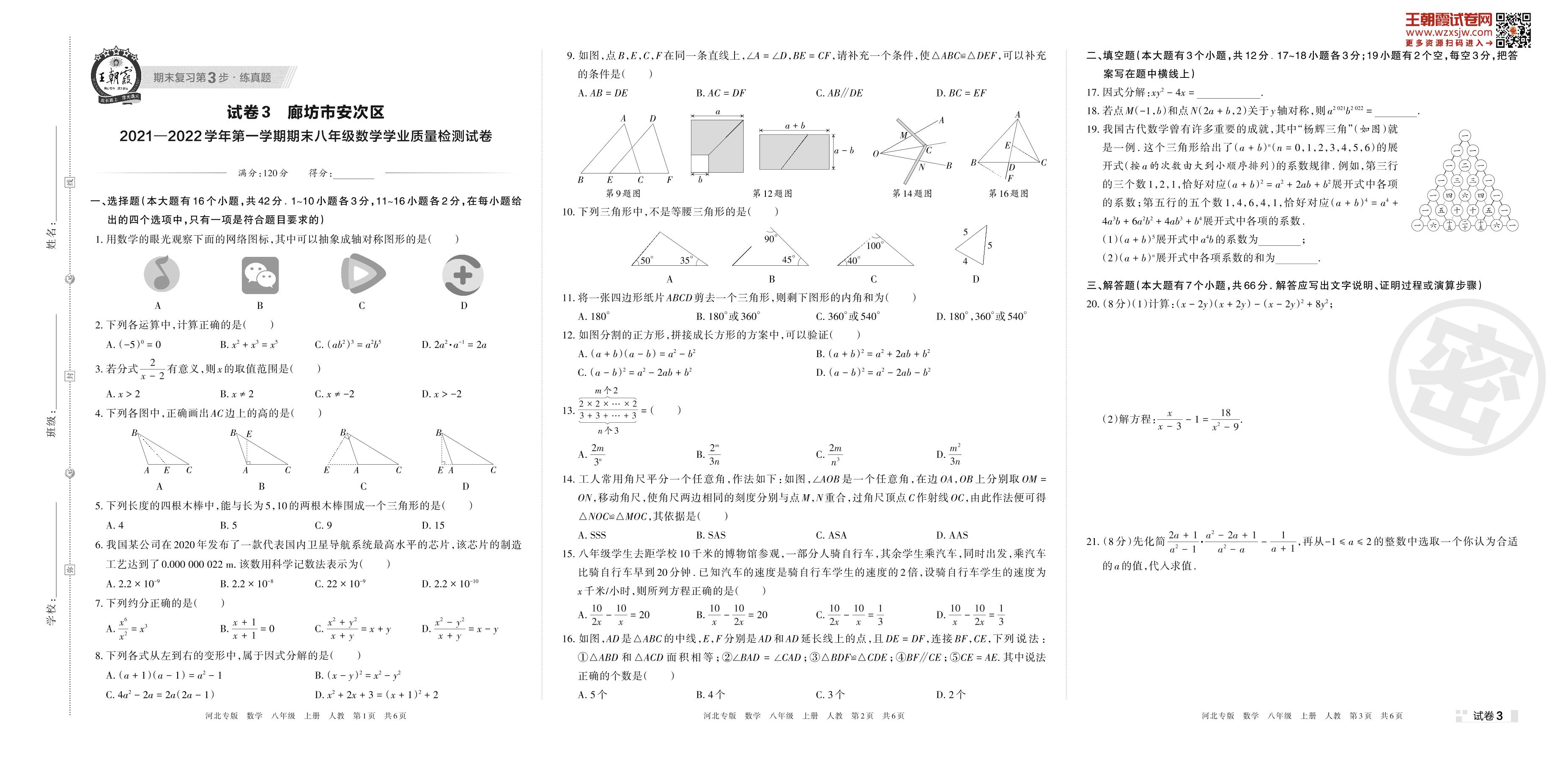 廊坊市安次区2021—2022学年第一学期期末八年级数学学业质量检测试卷(人教版)【3】