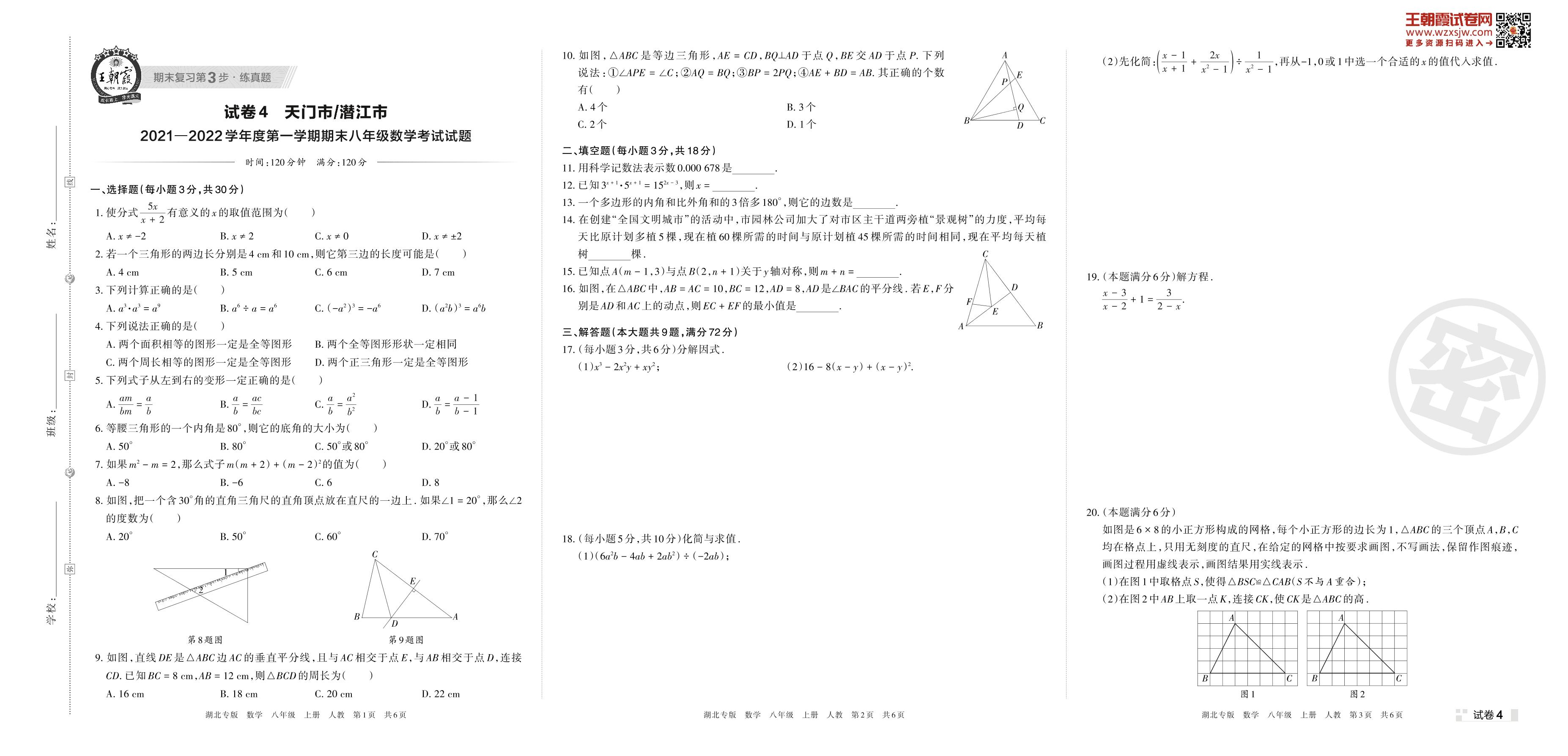 天门市、潜江市2021—2022学年度第一学期期末八年级数学考试试题(人教版)【4】