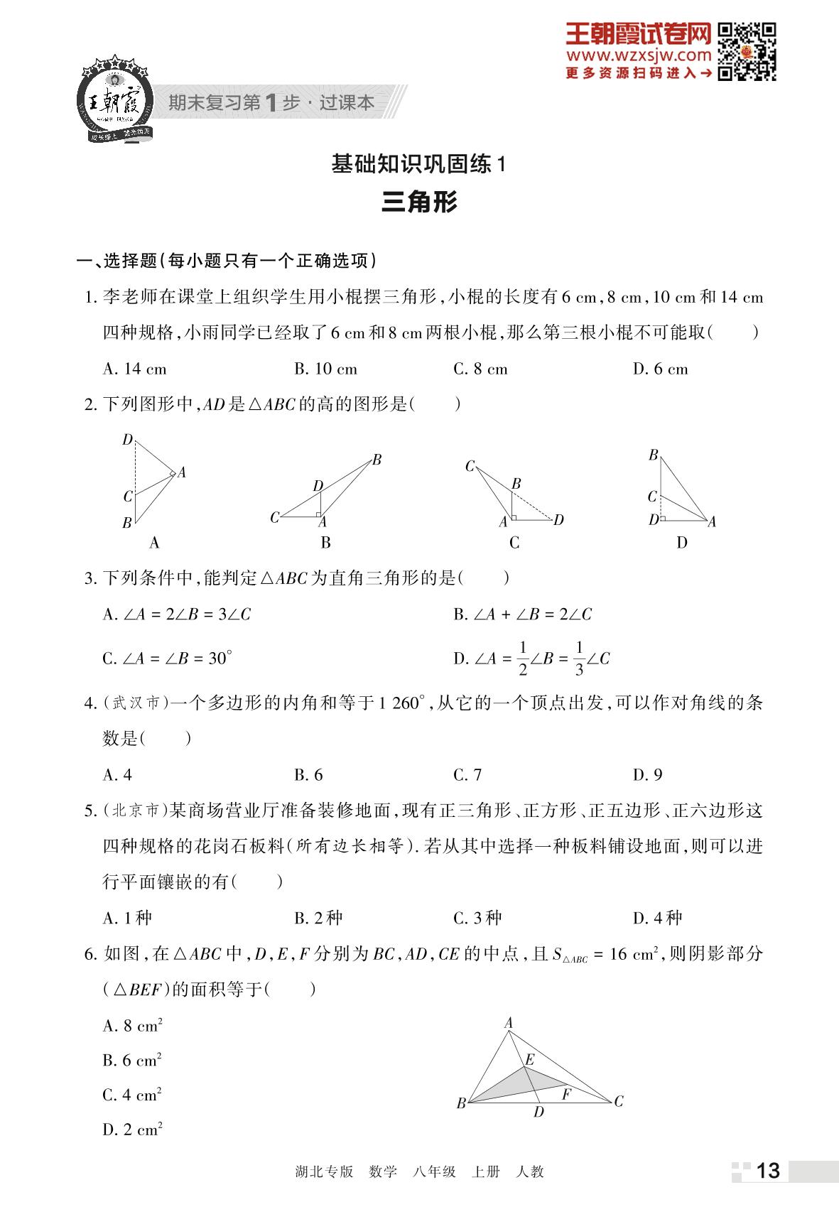 王朝霞期末过课本——基础知识巩固练1 三角形八年级上册数学(人教版)_R221125150027256