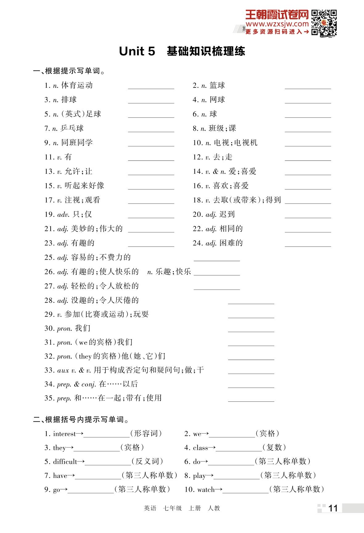 王朝霞期末过课本——Unit 5 基础知识梳理练七年级上册英语(人教版)_R221125151110618