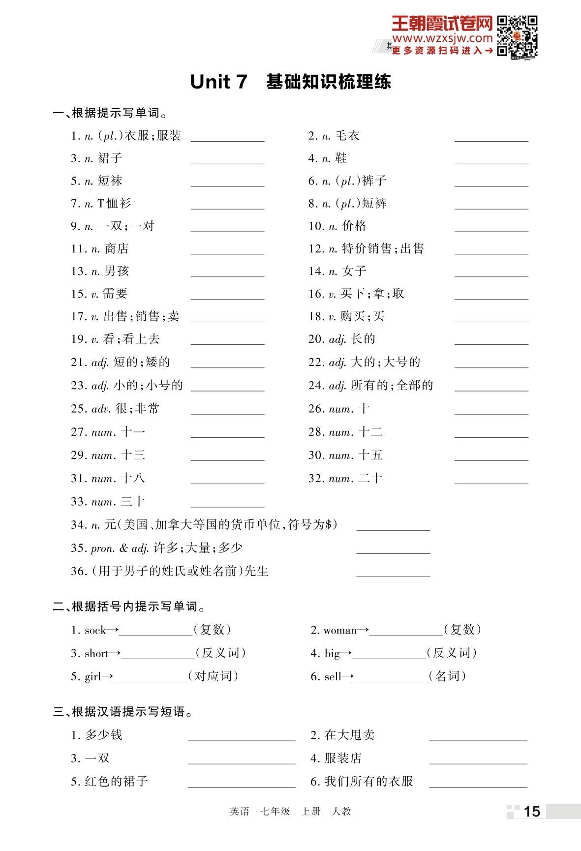 王朝霞期末过课本——Unit 7 基础知识梳理练七年级上册英语(人教版)_R221125151111161