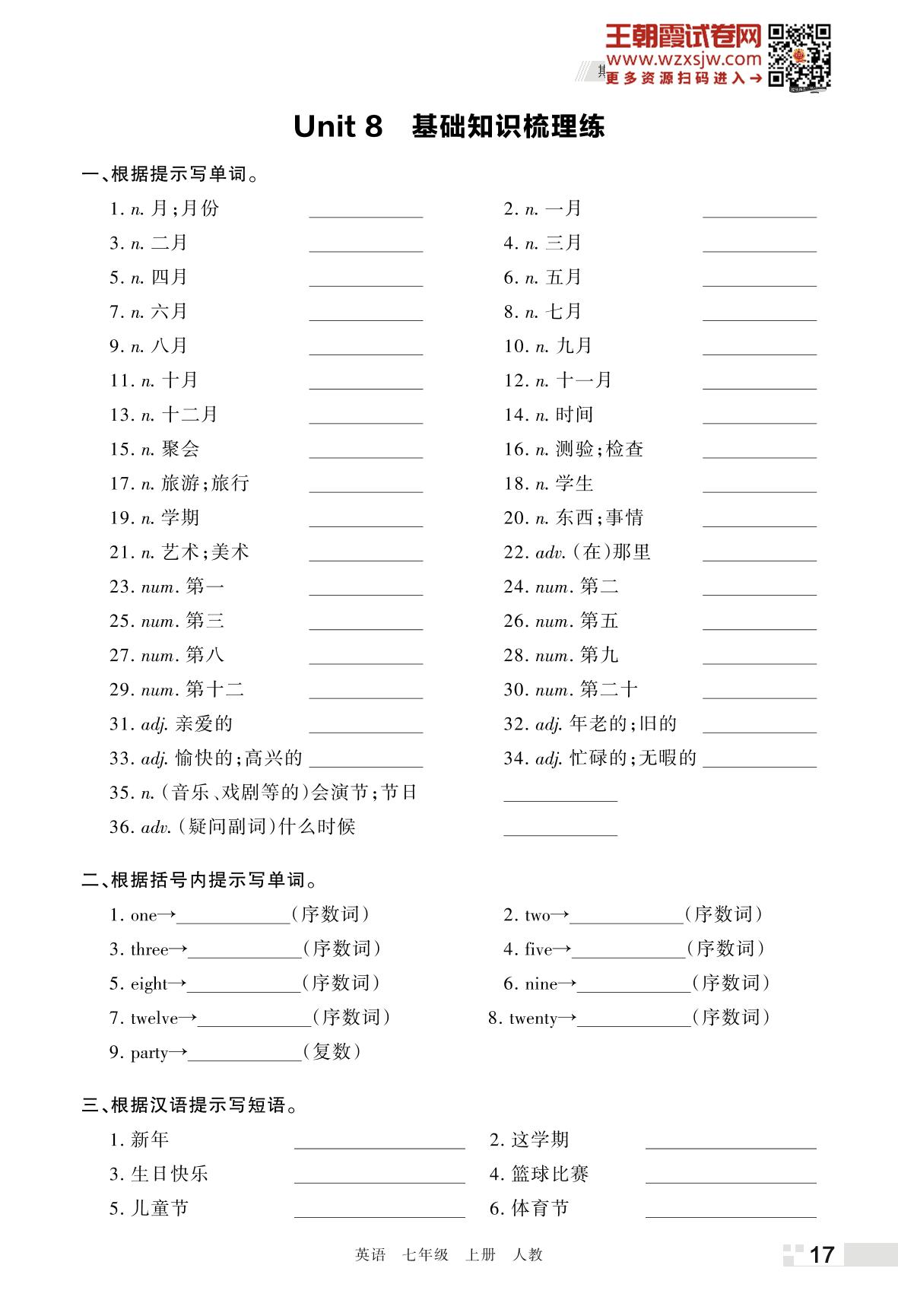 王朝霞期末过课本——Unit 8 基础知识梳理练七年级上册英语(人教版)_R221125151112188