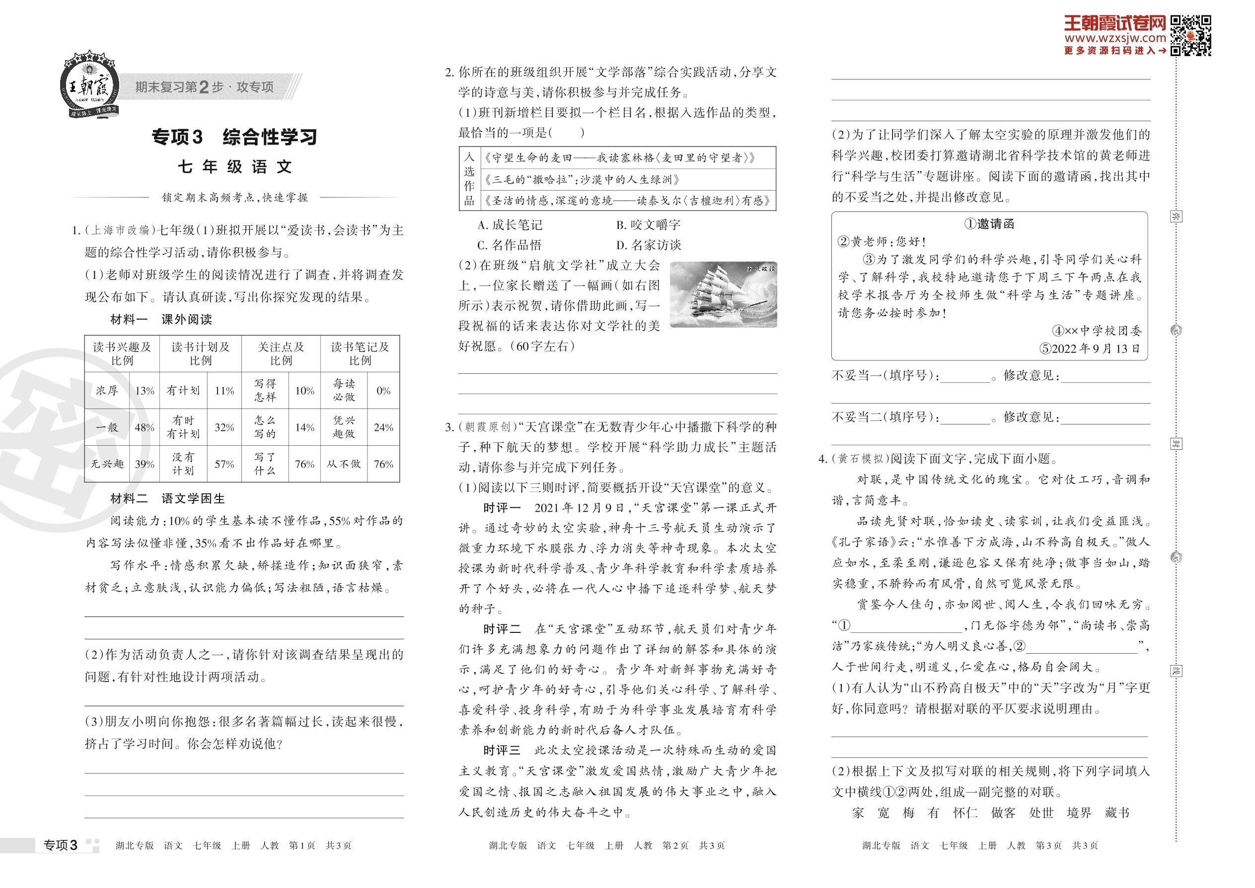 王朝霞期末专项卷——综合性学习七年级上册语文(人教版)_R221125152505638【3】