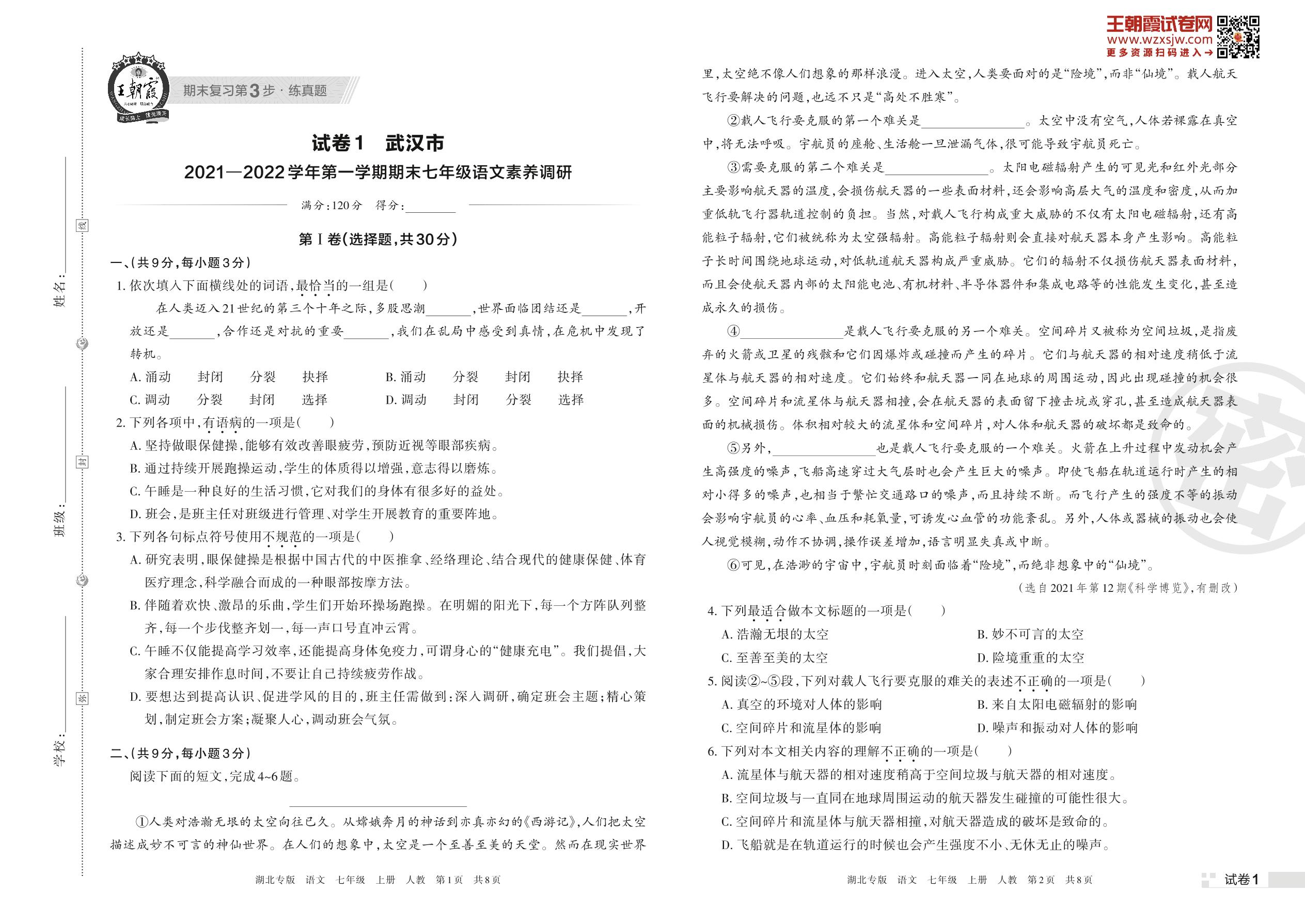 武汉市2021—2022学年第一学期期末七年级语文素养调研(人教版)【1】