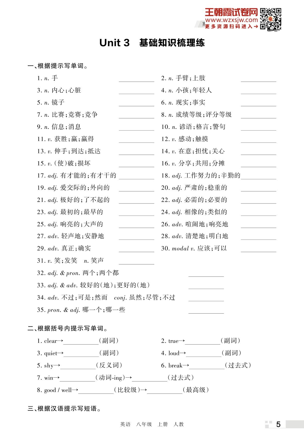 王朝霞期末过课本——Unit 3 基础知识梳理练八年级上册英语(人教版)
