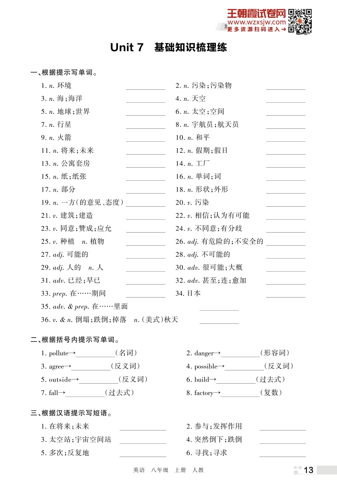 王朝霞期末过课本——Unit 7 基础知识梳理练八年级上册英语(人教版)