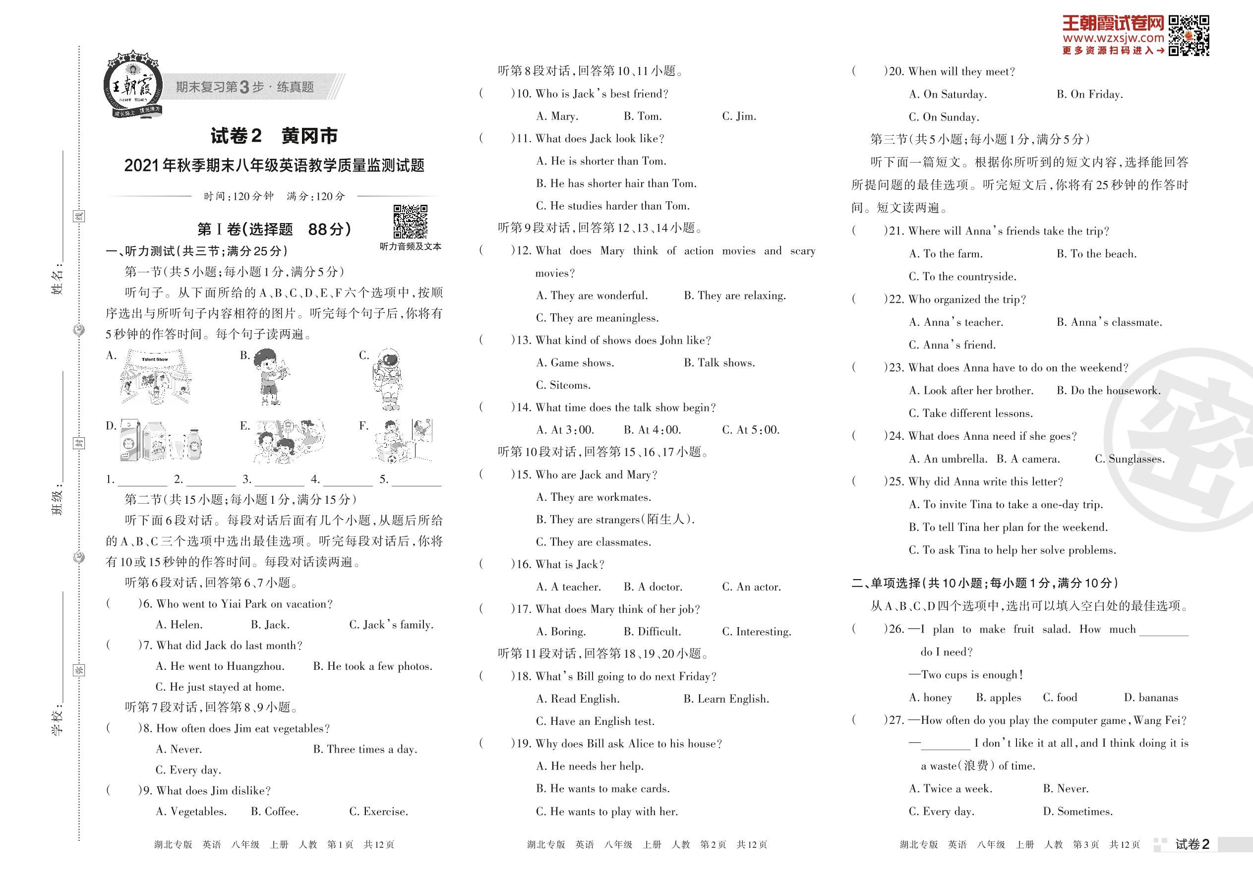 黄冈市2021年秋季期末八年级英语教学质量监测试题(人教版)【2】