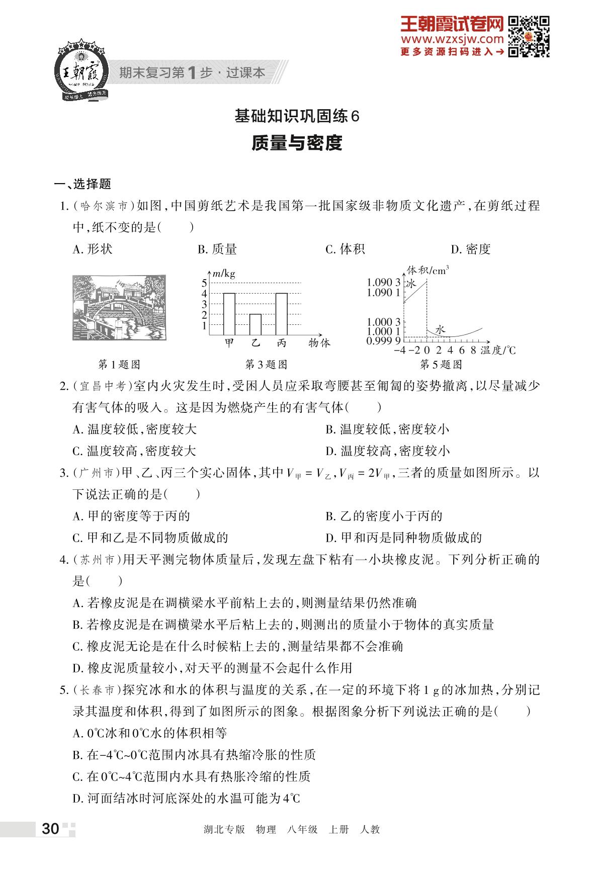 王朝霞期末过课本——基础知识巩固练6 质量与密度八年级上册物理(人教版)_R221125154845223