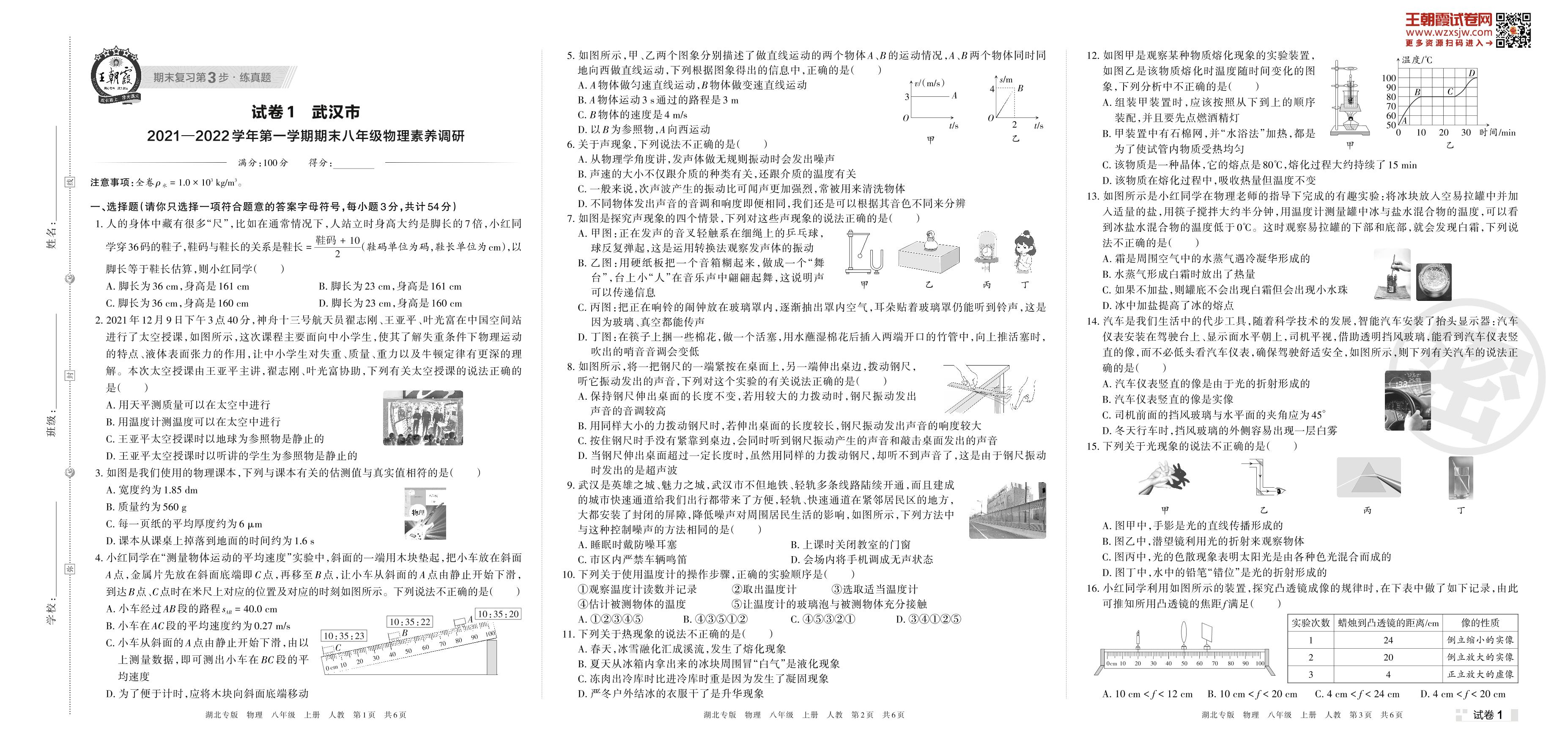 武汉市2021—2022学年第一学期期末八年级物理素养调研(人教版)【1】