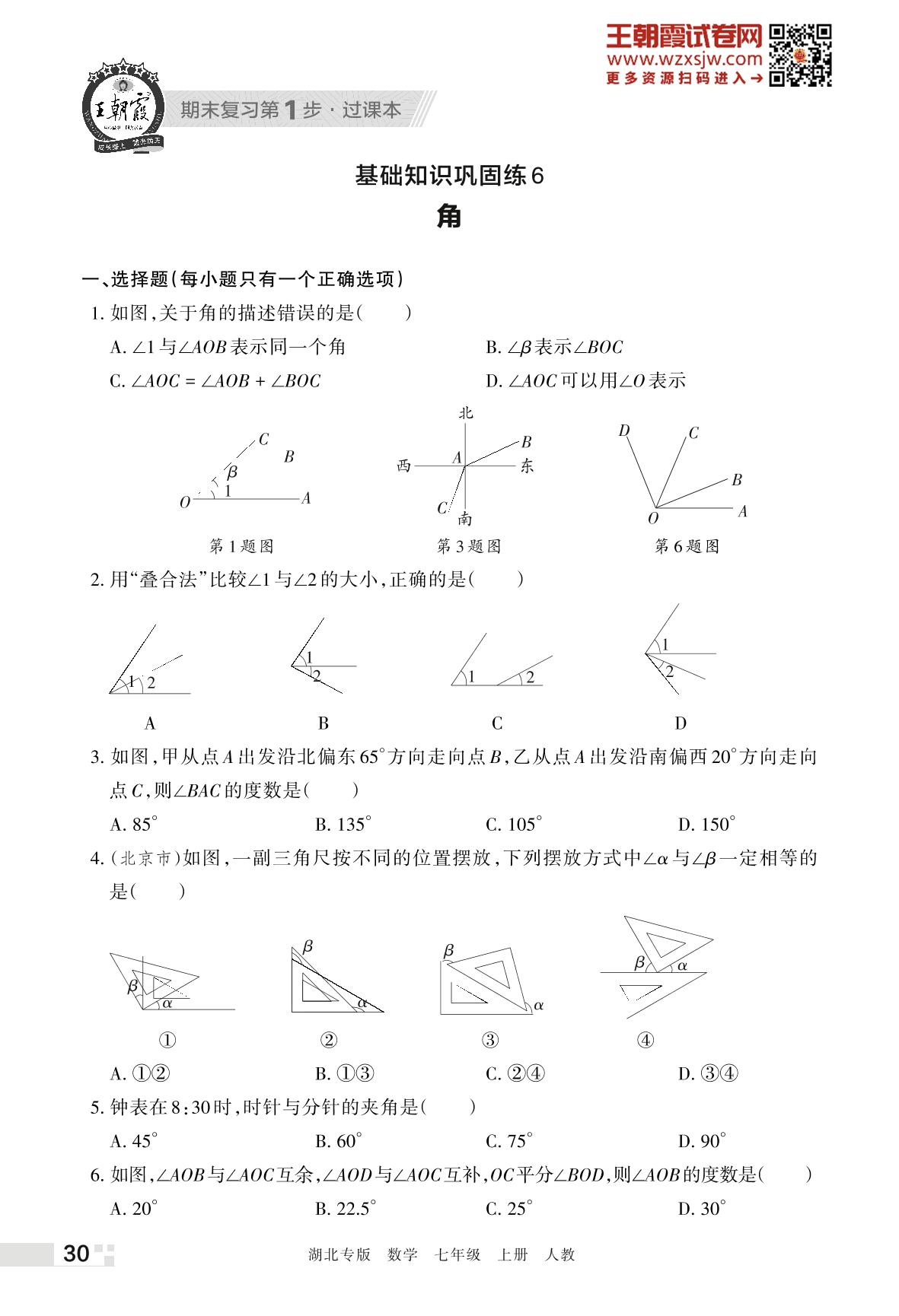 王朝霞期末过课本——基础知识巩固练6 角七年级上册数学(人教版)_R221125155855135