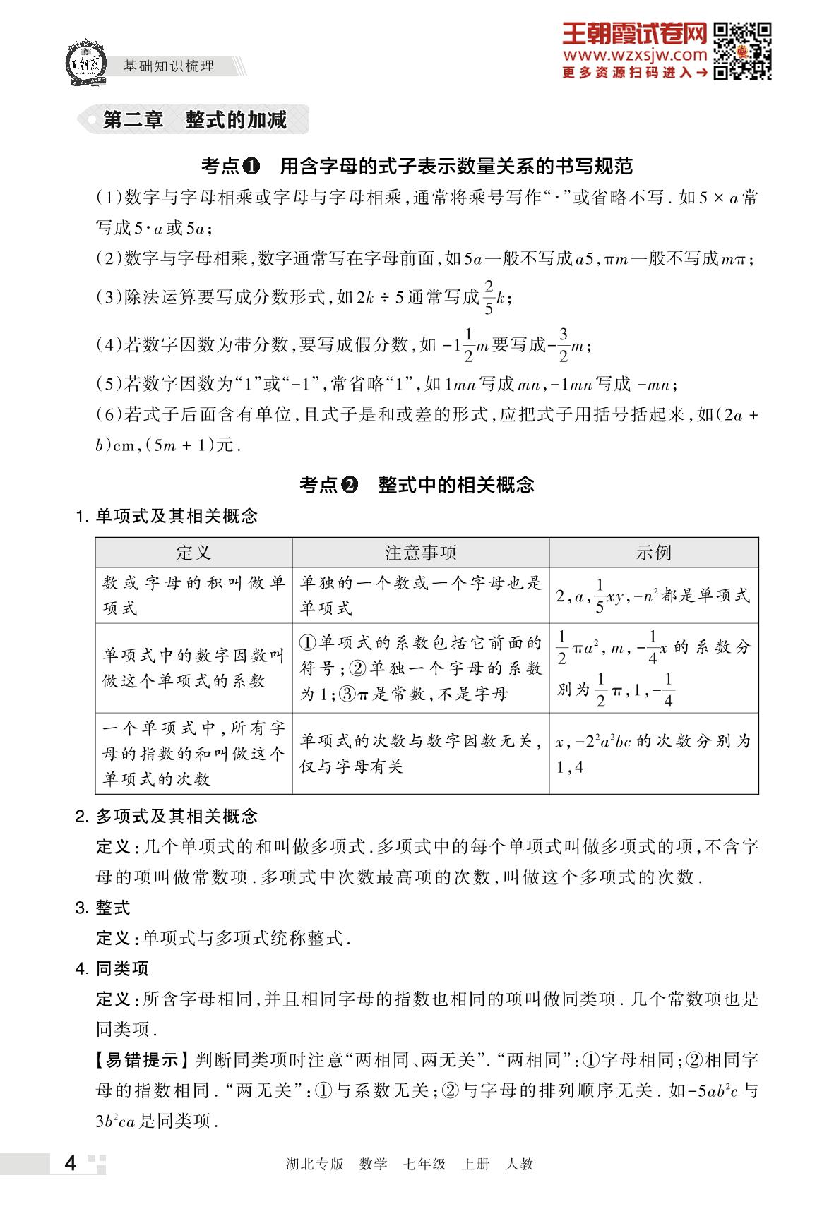 王朝霞期末知识梳理——第二章 整式的加减七年级上册数学(人教版)_R221125155855087