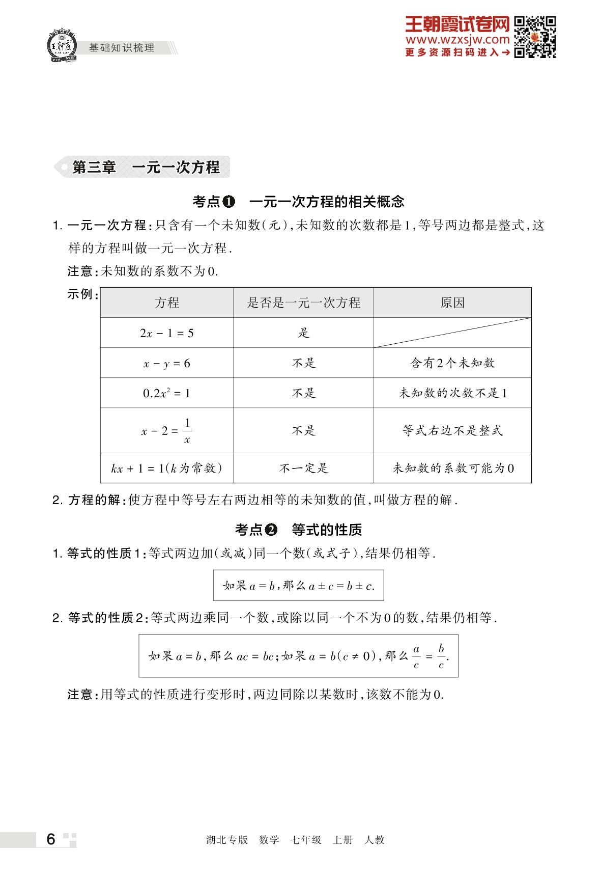 王朝霞期末知识梳理——第三章 一元一次方程七年级上册数学(人教版)_R221125155856790