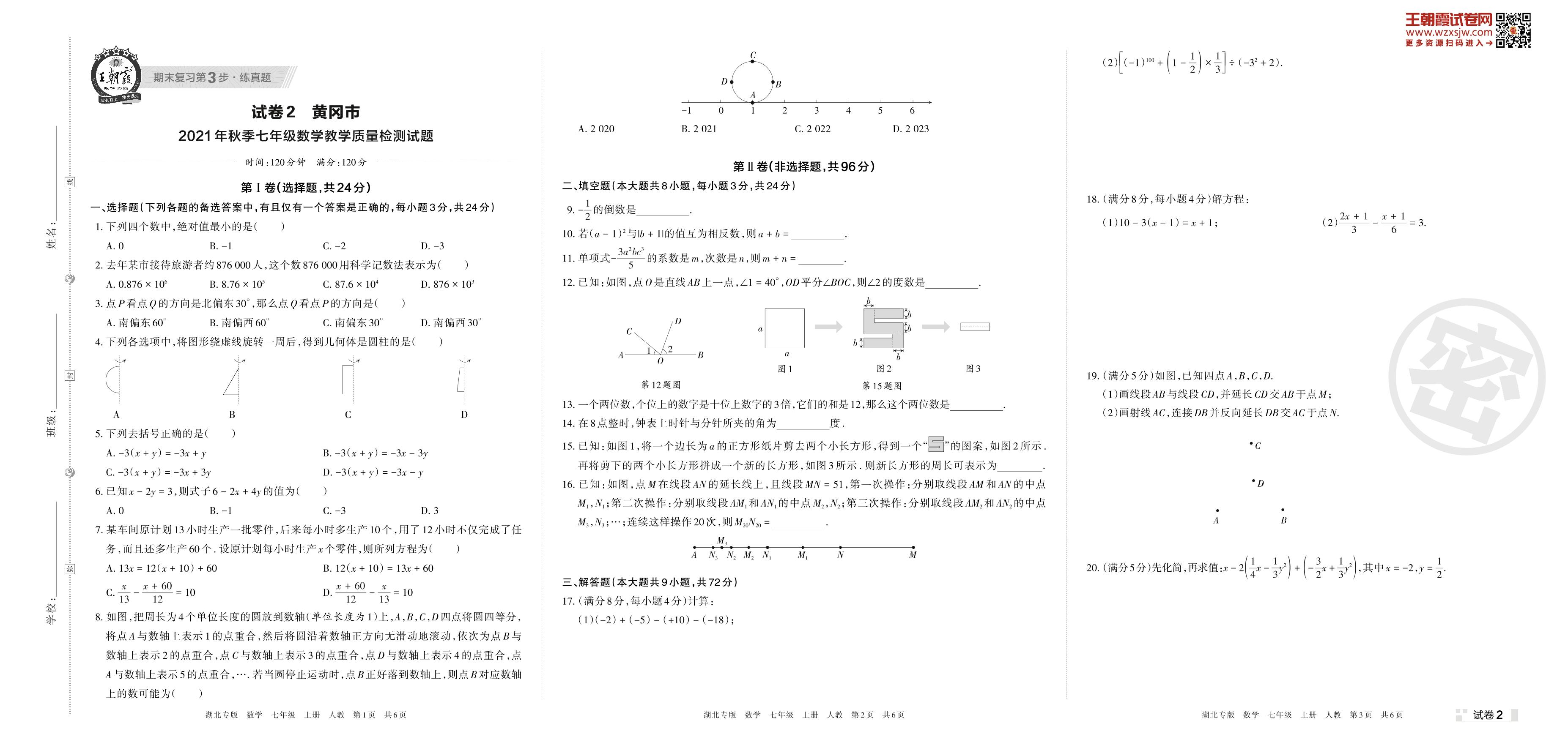 黄冈市2021年秋季七年级数学教学质量检测试题(人教版)【2】