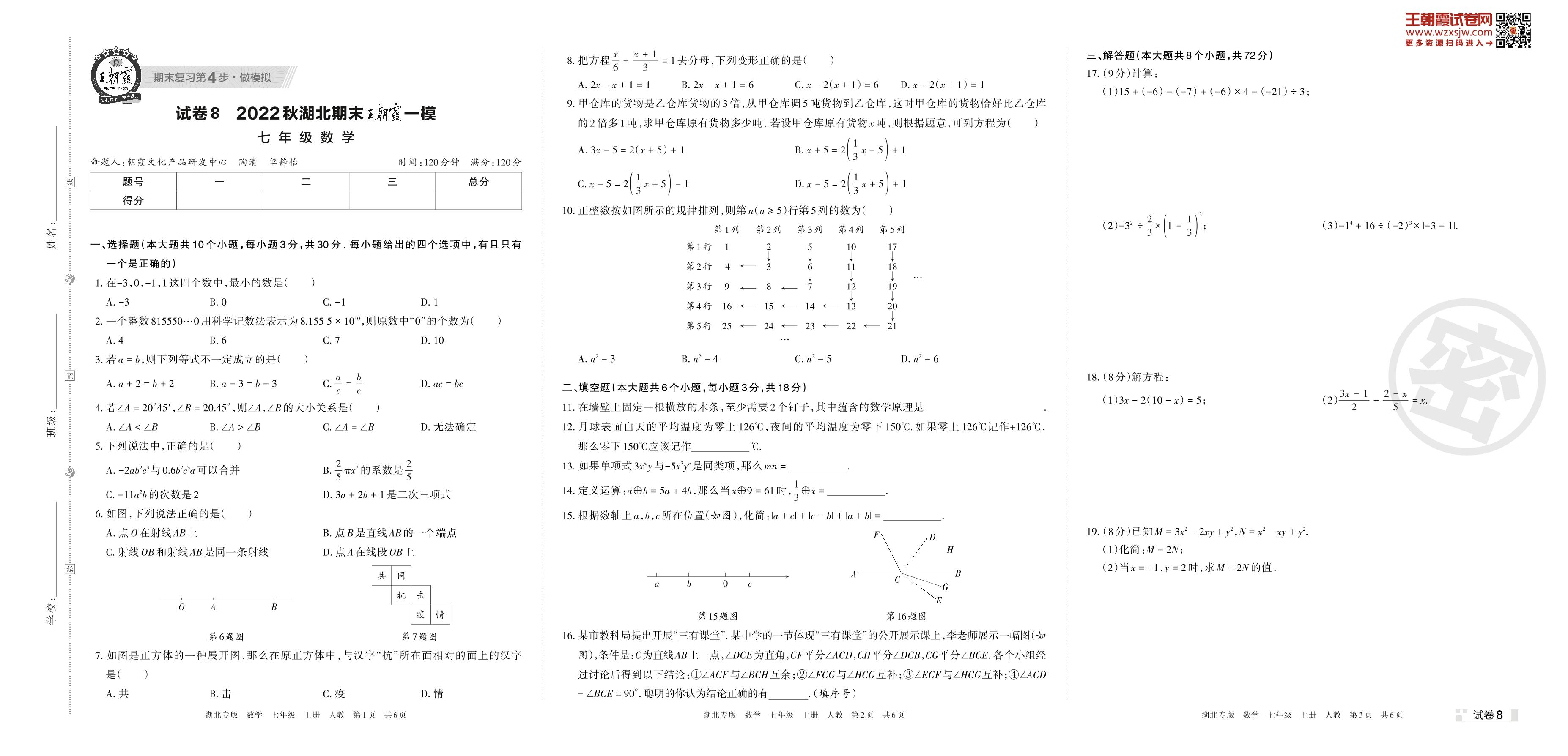 王朝霞期末模拟卷七年级上册数学(人教版)_R221125155857650【8】