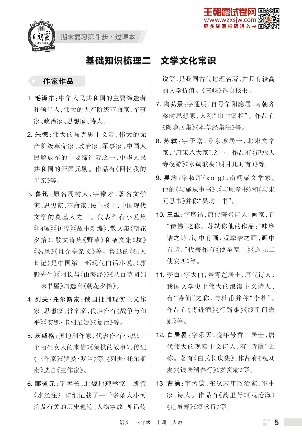 王朝霞期末过课本——基础知识梳理二 文学文化常识八年级上册语文(人教版)_R221125160833913