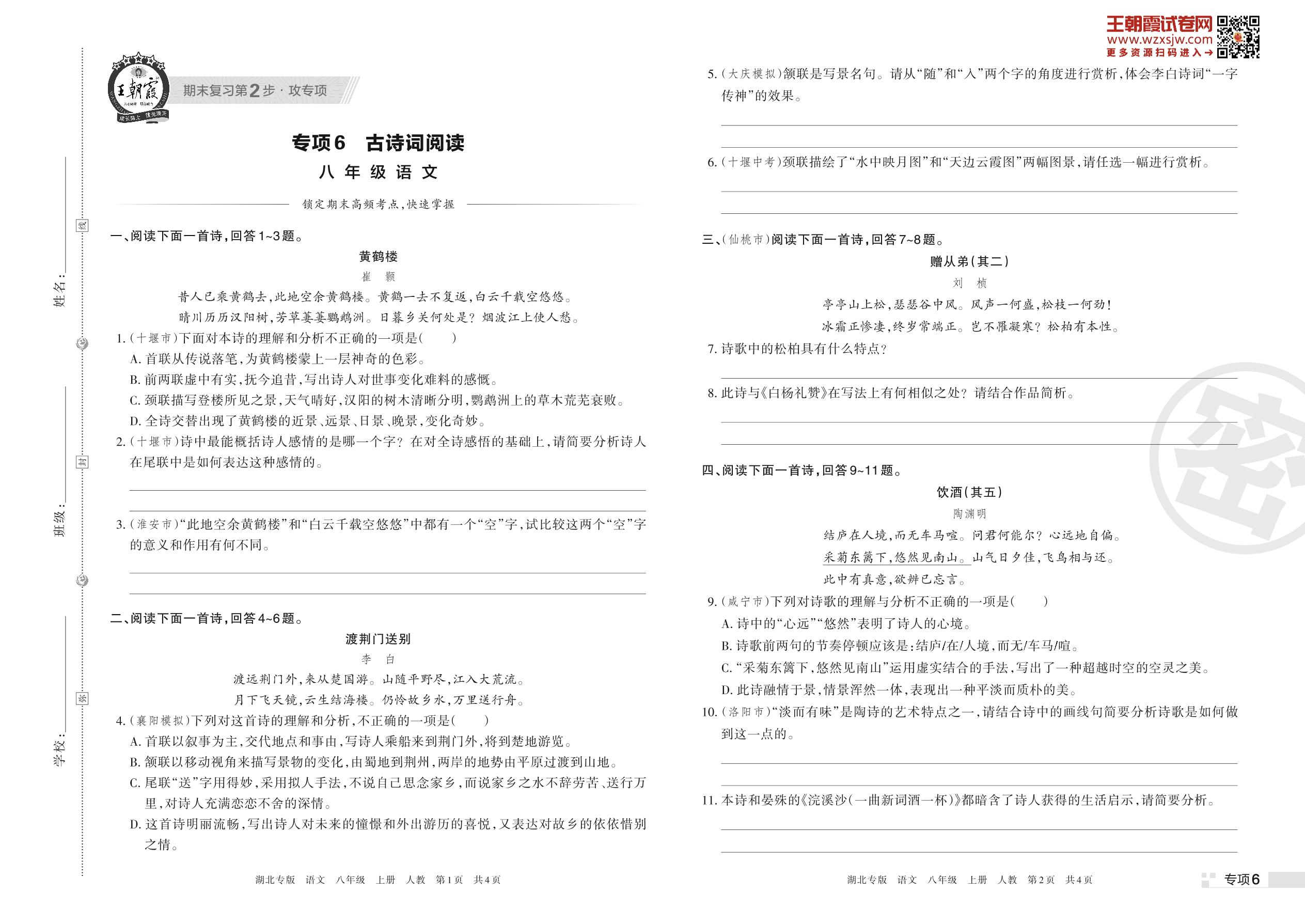 王朝霞期末专项卷——古诗词阅读八年级上册语文(人教版)【6】