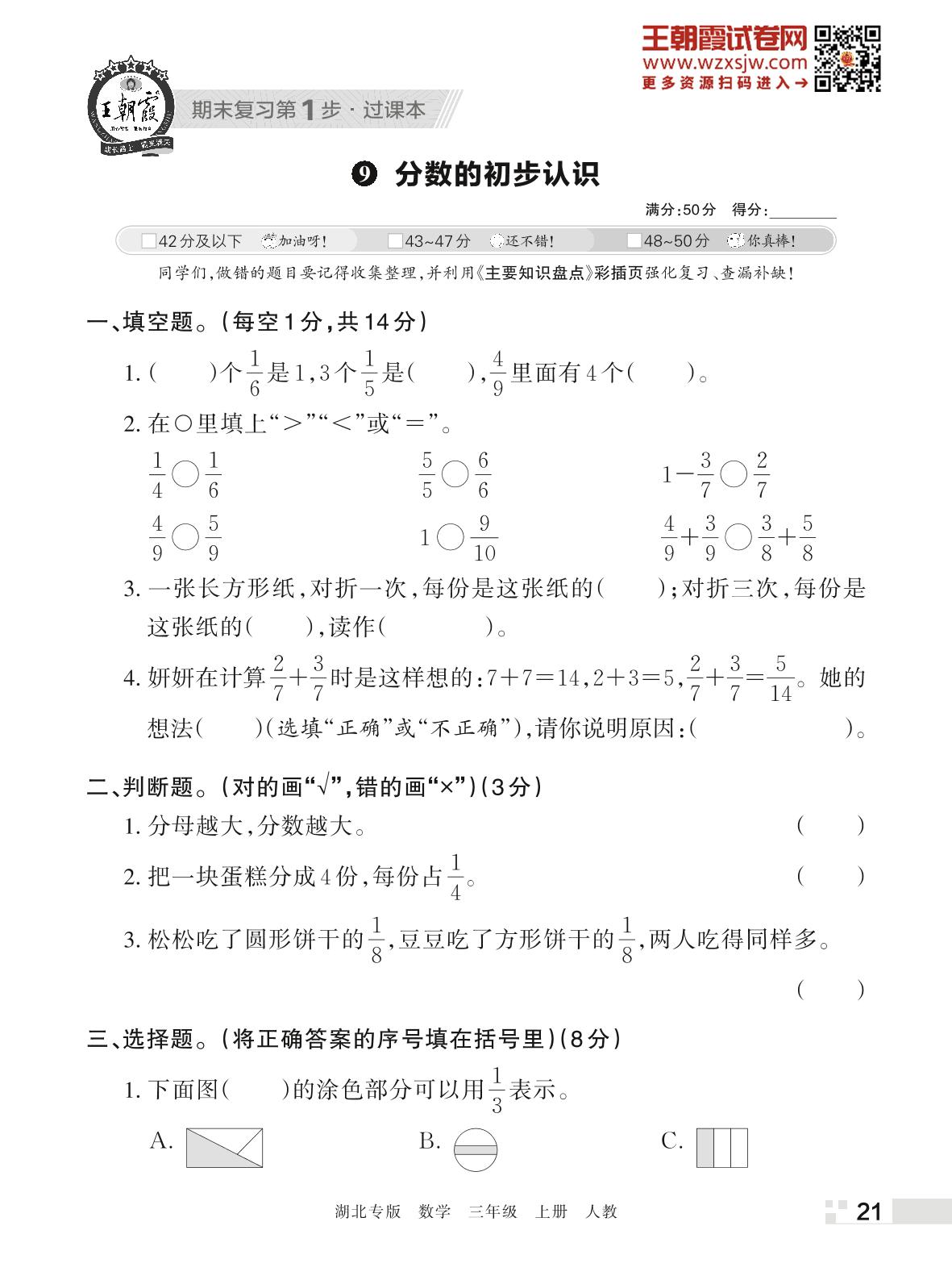 王朝霞期末过课本——9 分数的初步认识三年级上册数学(人教版)_R221125162336192