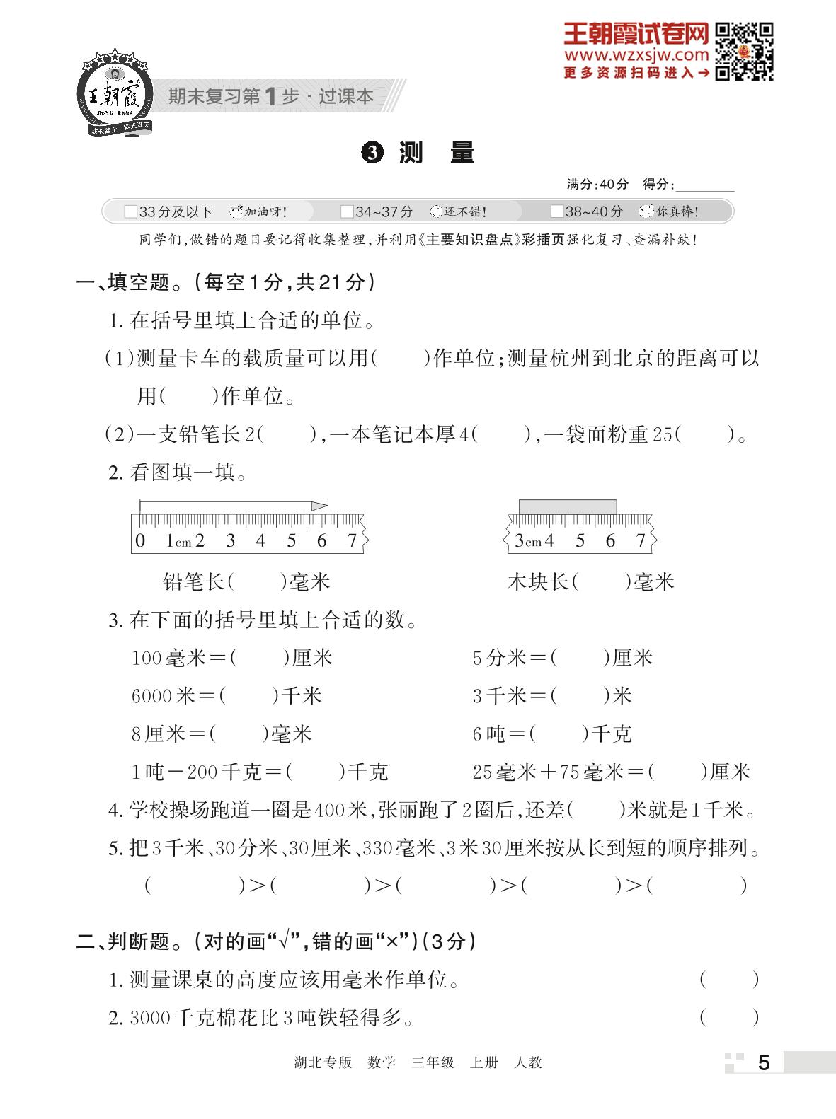 王朝霞期末过课本——3 测量三年级上册数学(人教版)_R221125162336494
