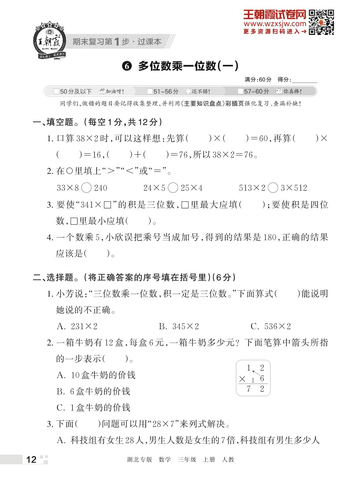 王朝霞期末过课本——6 多位数乘一位数(一)三年级上册数学(人教版)_R221125162337299