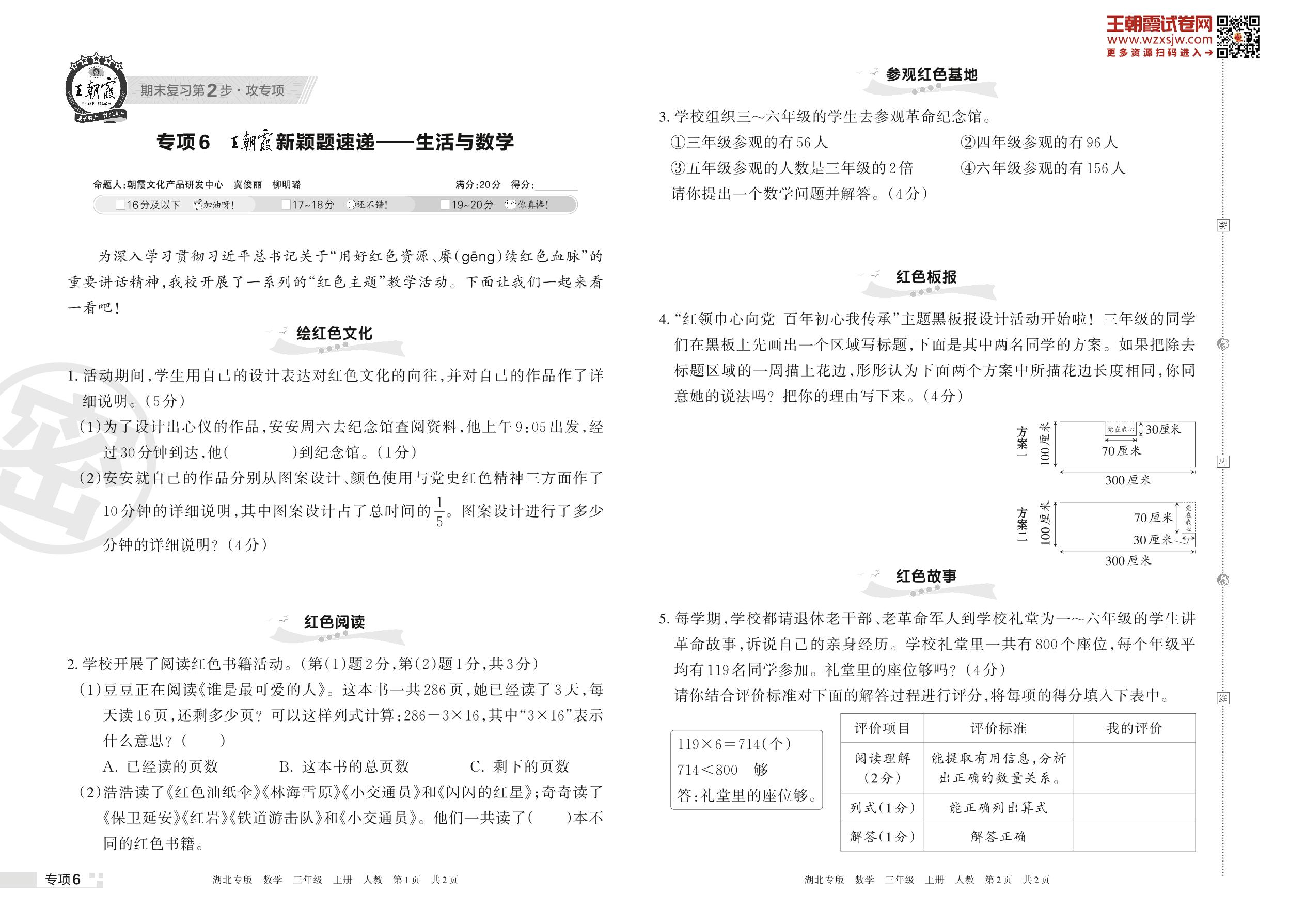 王朝霞期末专项卷——王朝霞新颖题速递:生活与数学三年级上册数学(人教版)_R221125162337865【6】
