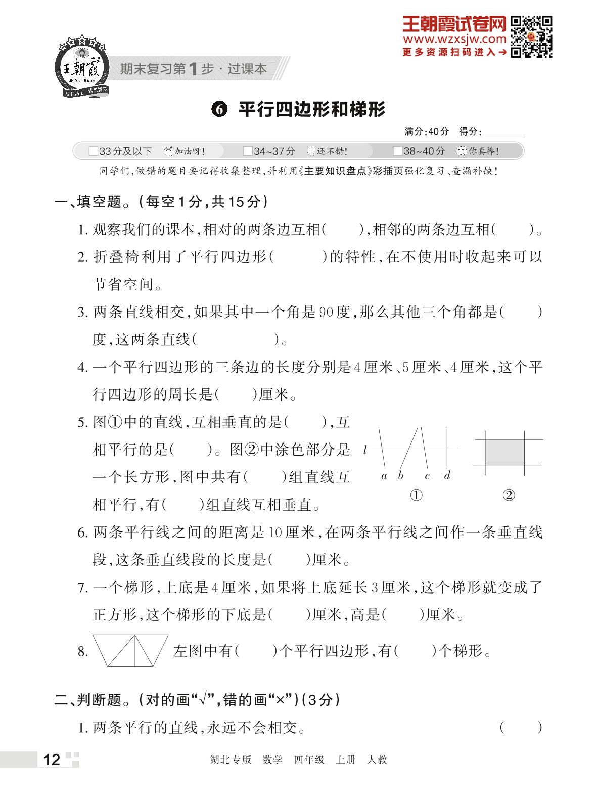 王朝霞期末过课本——6 平行四边形和梯形四年级上册数学(人教版)_R221125163257900