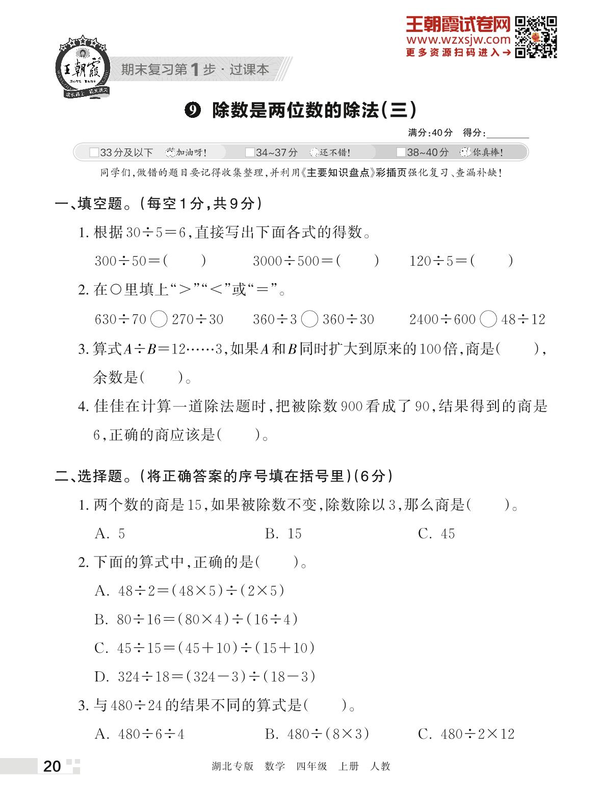 王朝霞期末过课本——9 除数是两位数的除法(三)四年级上册数学(人教版)_R221125163257361