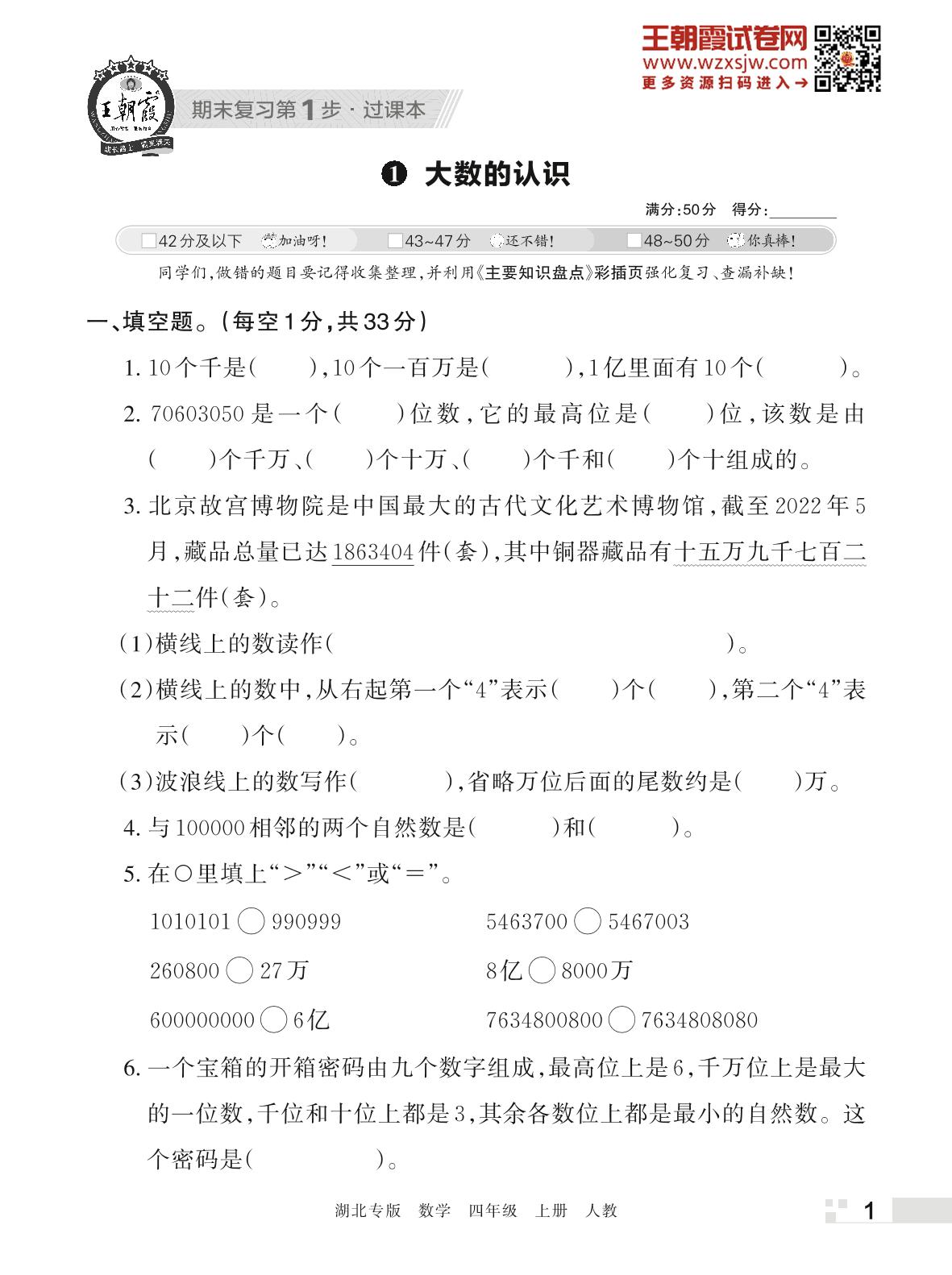 王朝霞期末过课本——1 大数的认识四年级上册数学(人教版)_R221125163258604