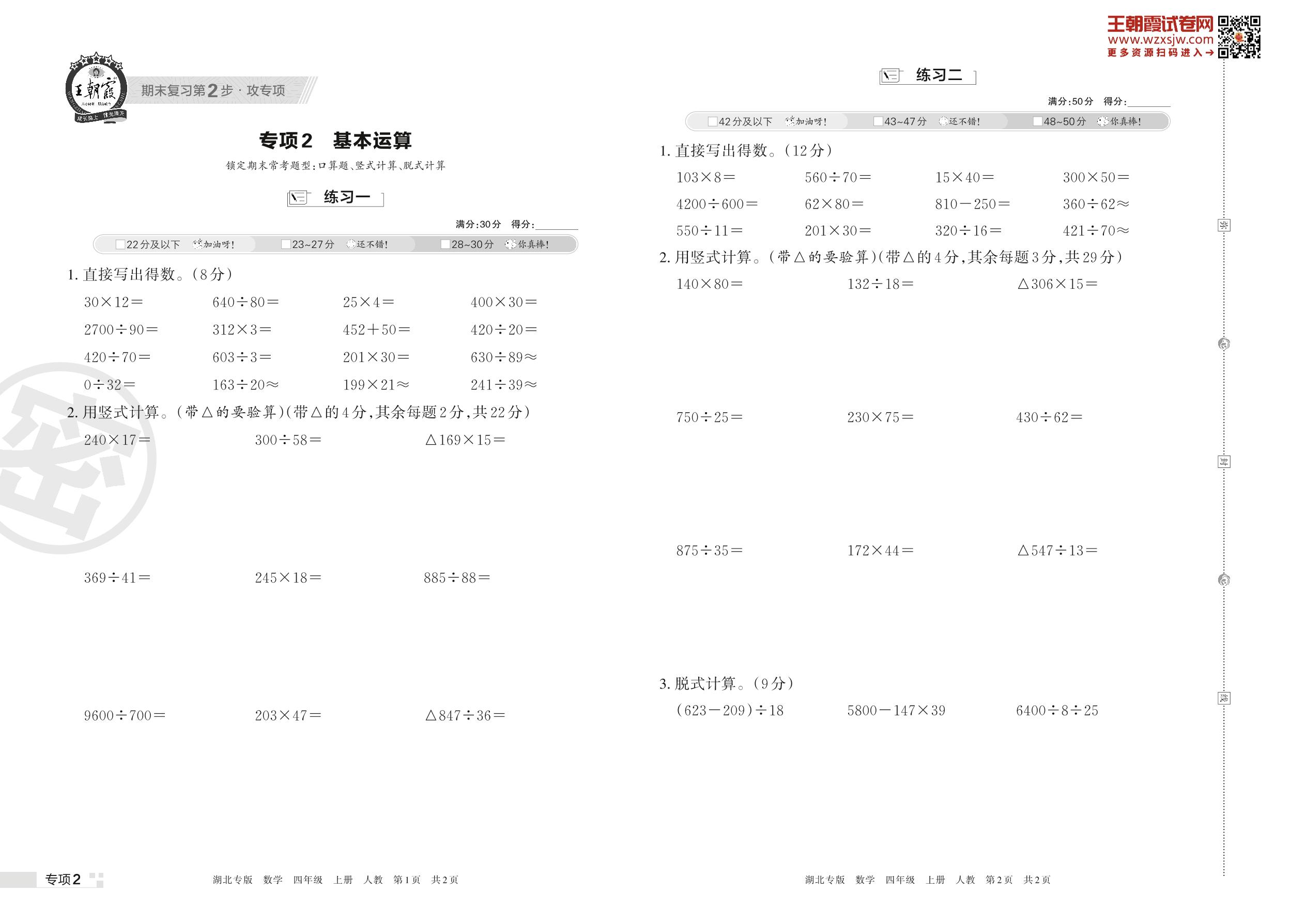 王朝霞期末专项卷——基本运算四年级上册数学(人教版)_R221125163258065【2】