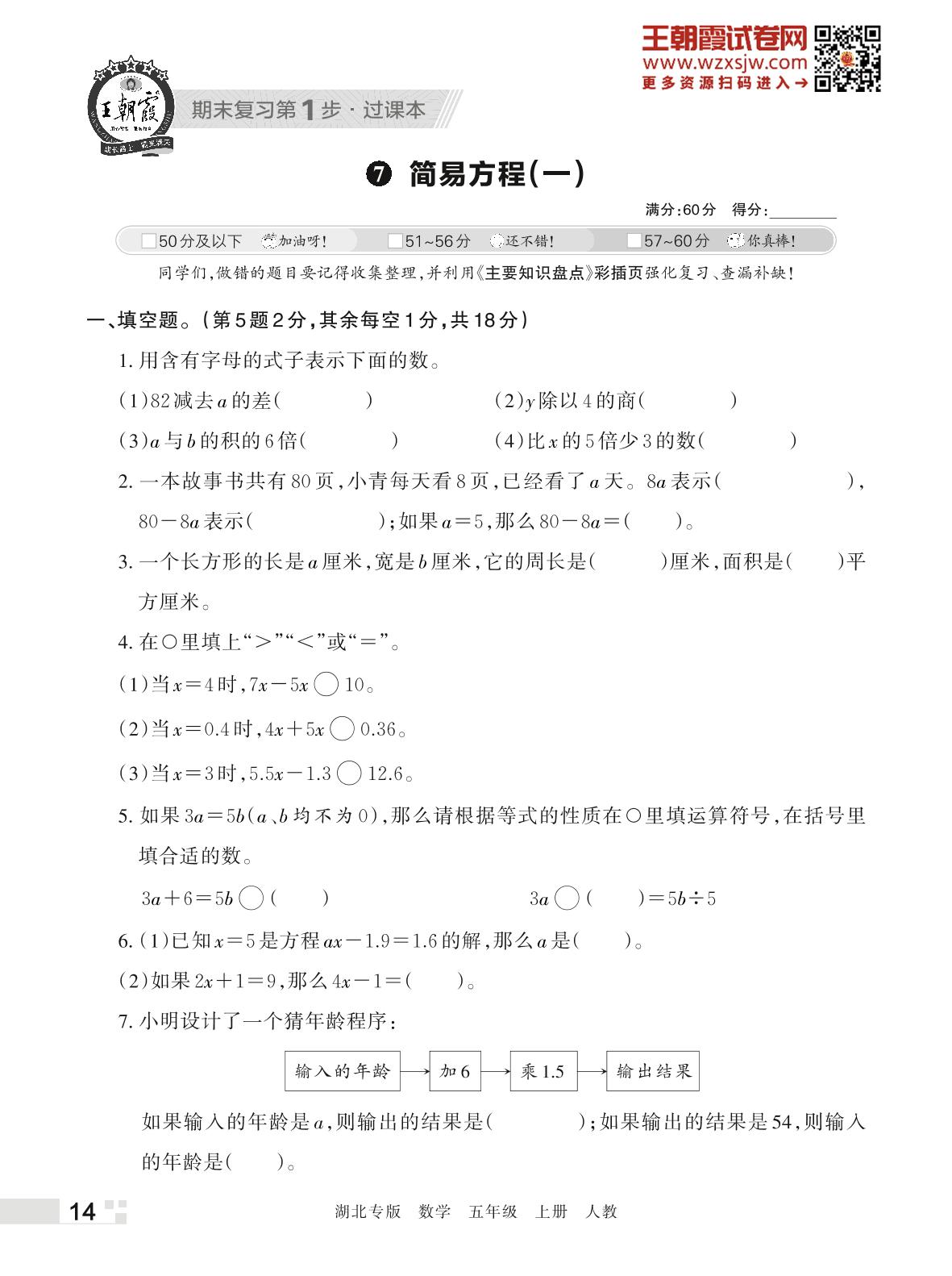 王朝霞期末过课本——7 简易方程(一)五年级上册数学(人教版)_R221125164520713