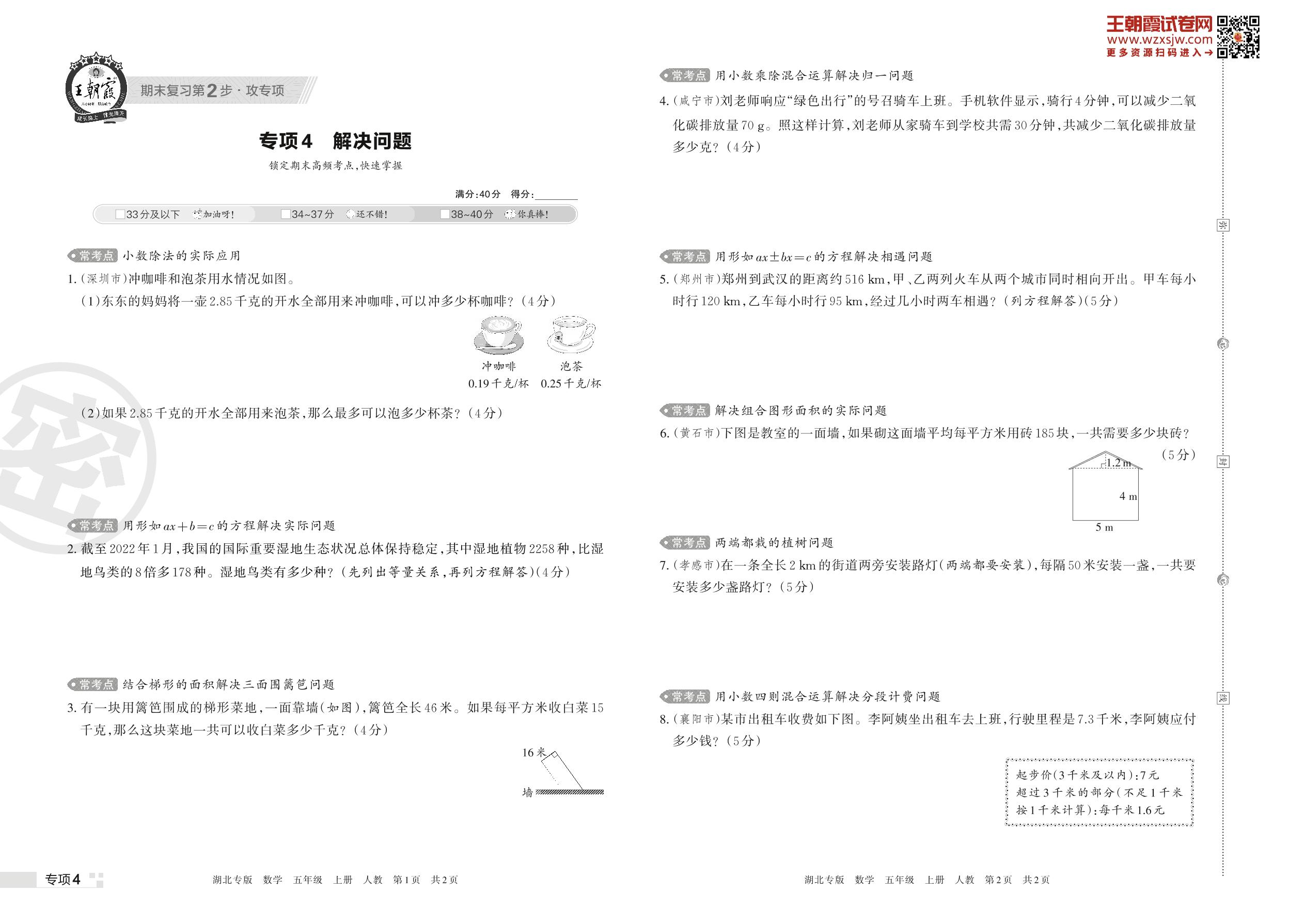 王朝霞期末专项卷——解决问题五年级上册数学(人教版)_R221125164522749【4】