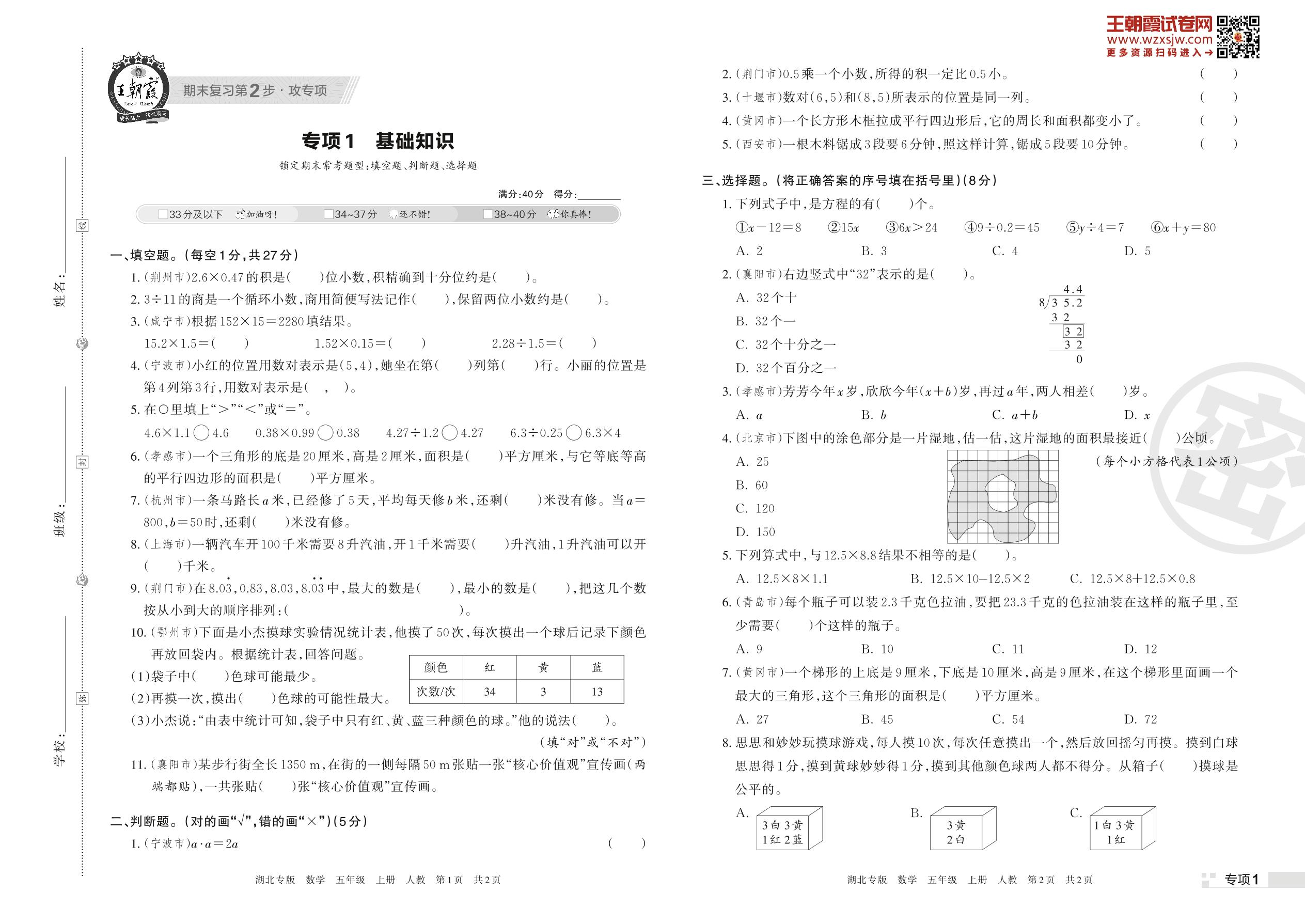 王朝霞期末专项卷——基础知识五年级上册数学(人教版)_R221125164522267【1】