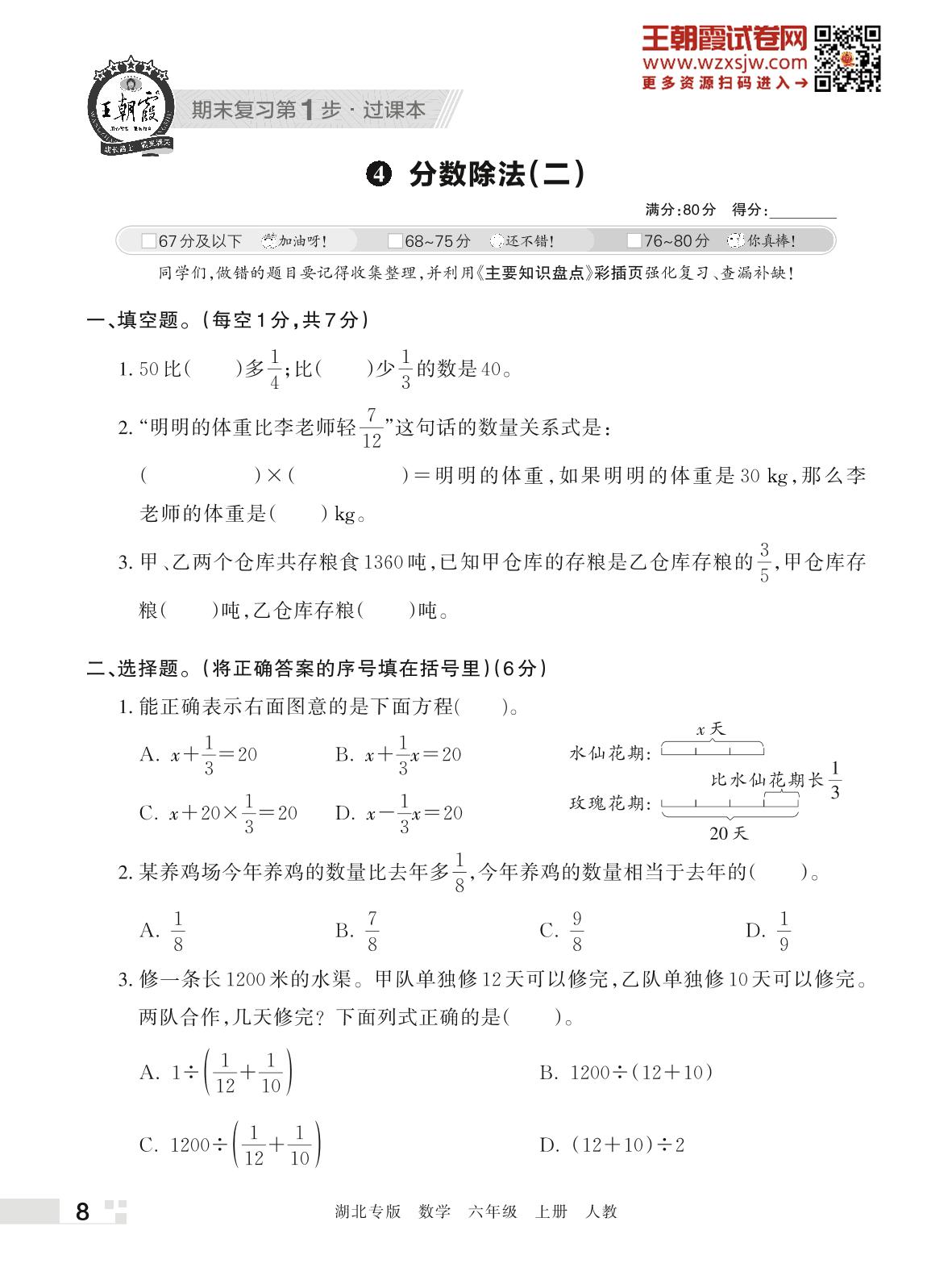 王朝霞期末过课本——4 分数除法(二)六年级上册数学(人教版)_R221125165546429