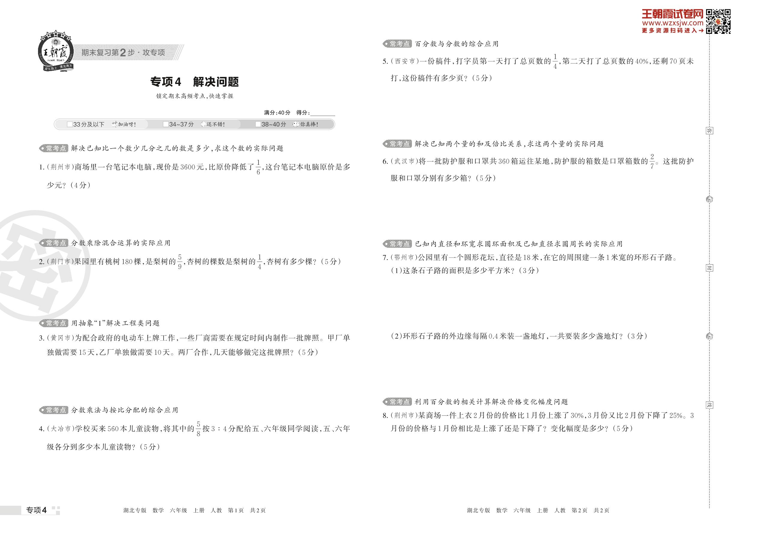 王朝霞期末专项卷——解决问题六年级上册数学(人教版)_R221125165547612【4】