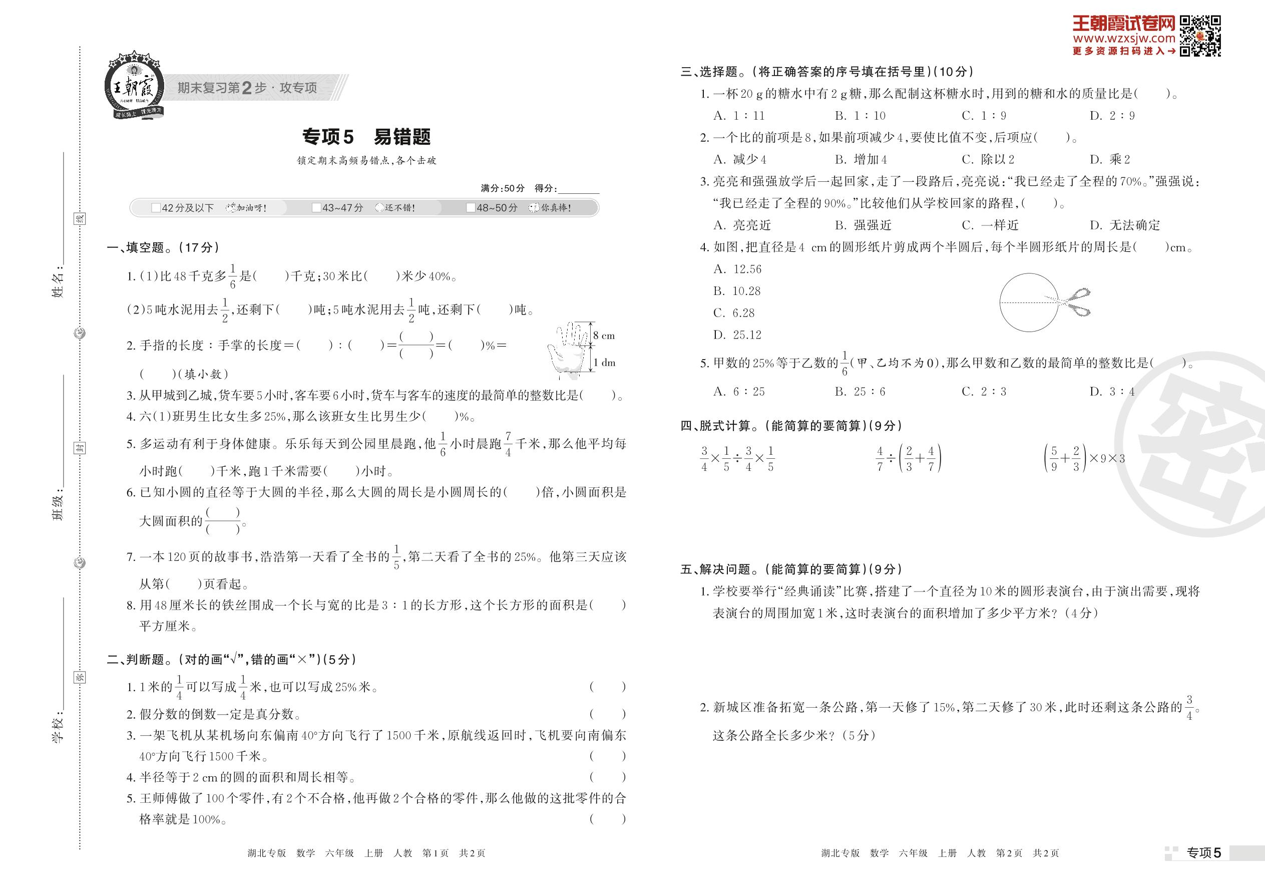 王朝霞期末专项卷——易错题六年级上册数学(人教版)_R221125165548038【5】