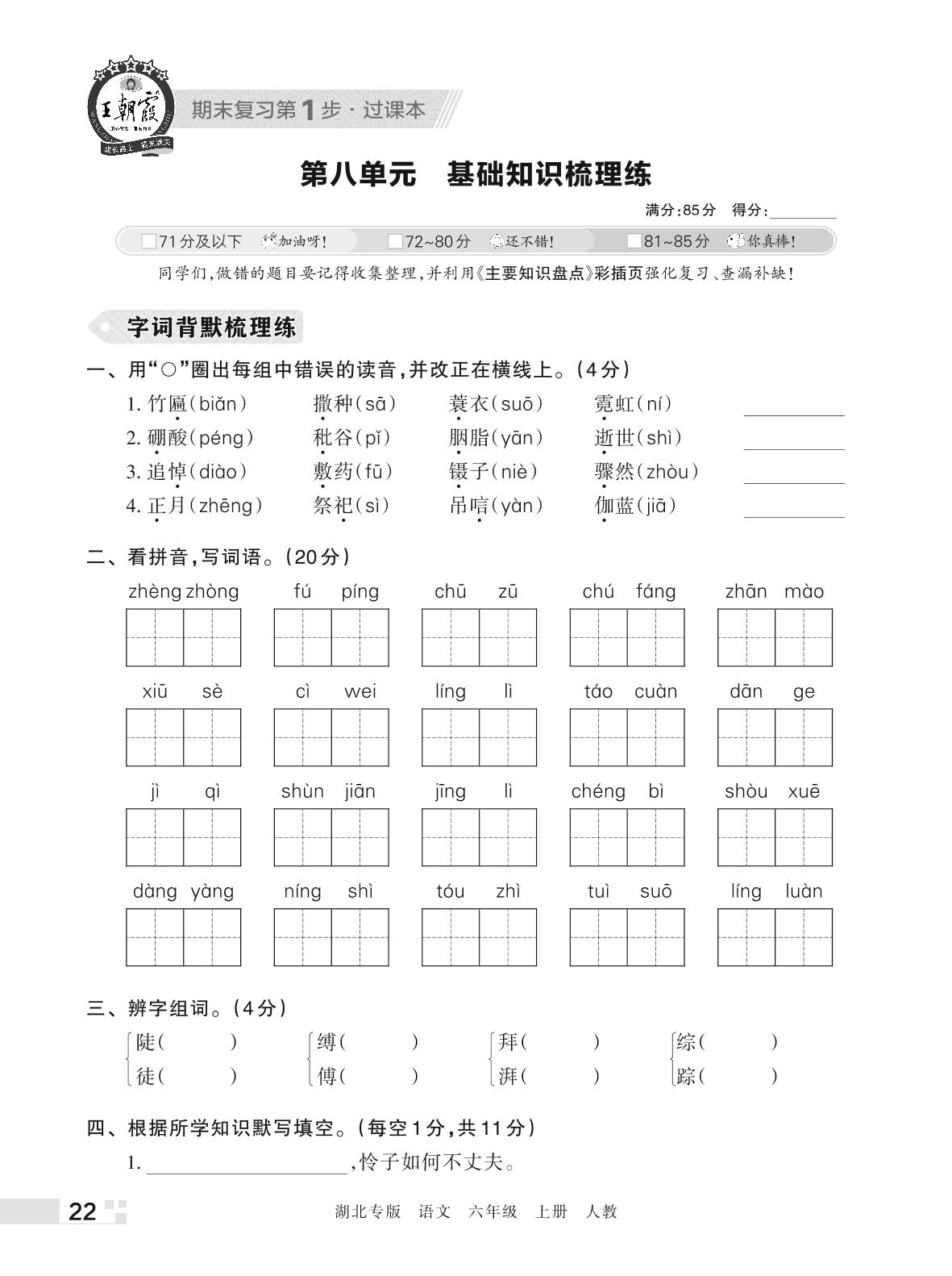 王朝霞期末过课本——第八单元 基础知识梳理练六年级上册语文(人教版)_R221125170334831