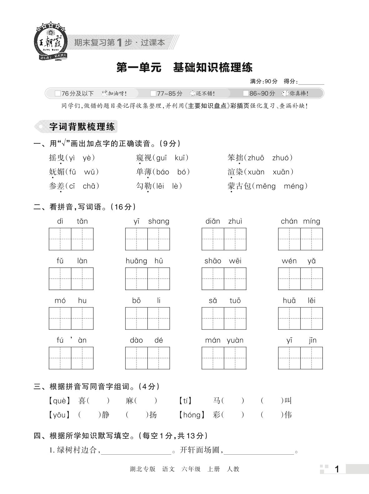 王朝霞期末过课本——第一单元 基础知识梳理练六年级上册语文(人教版)_R221125170334847