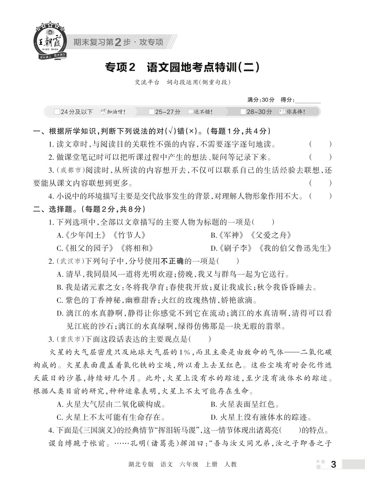 王朝霞期末专项卷——语文园地考点特训(二)六年级上册语文(人教版)_R221125170335722【2】