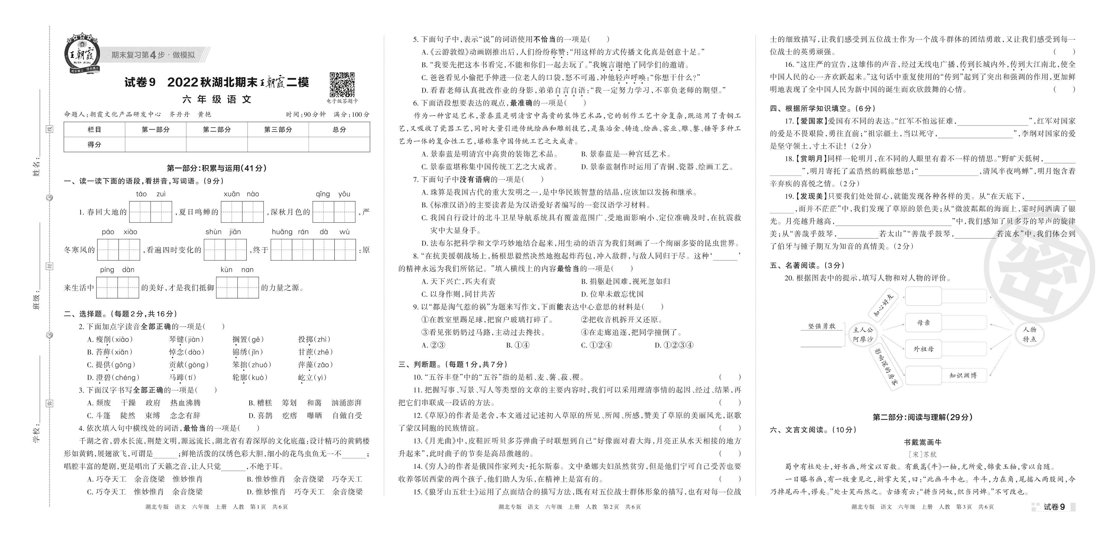 王朝霞期末模拟卷六年级上册语文(人教版)_R221125170336212【9】