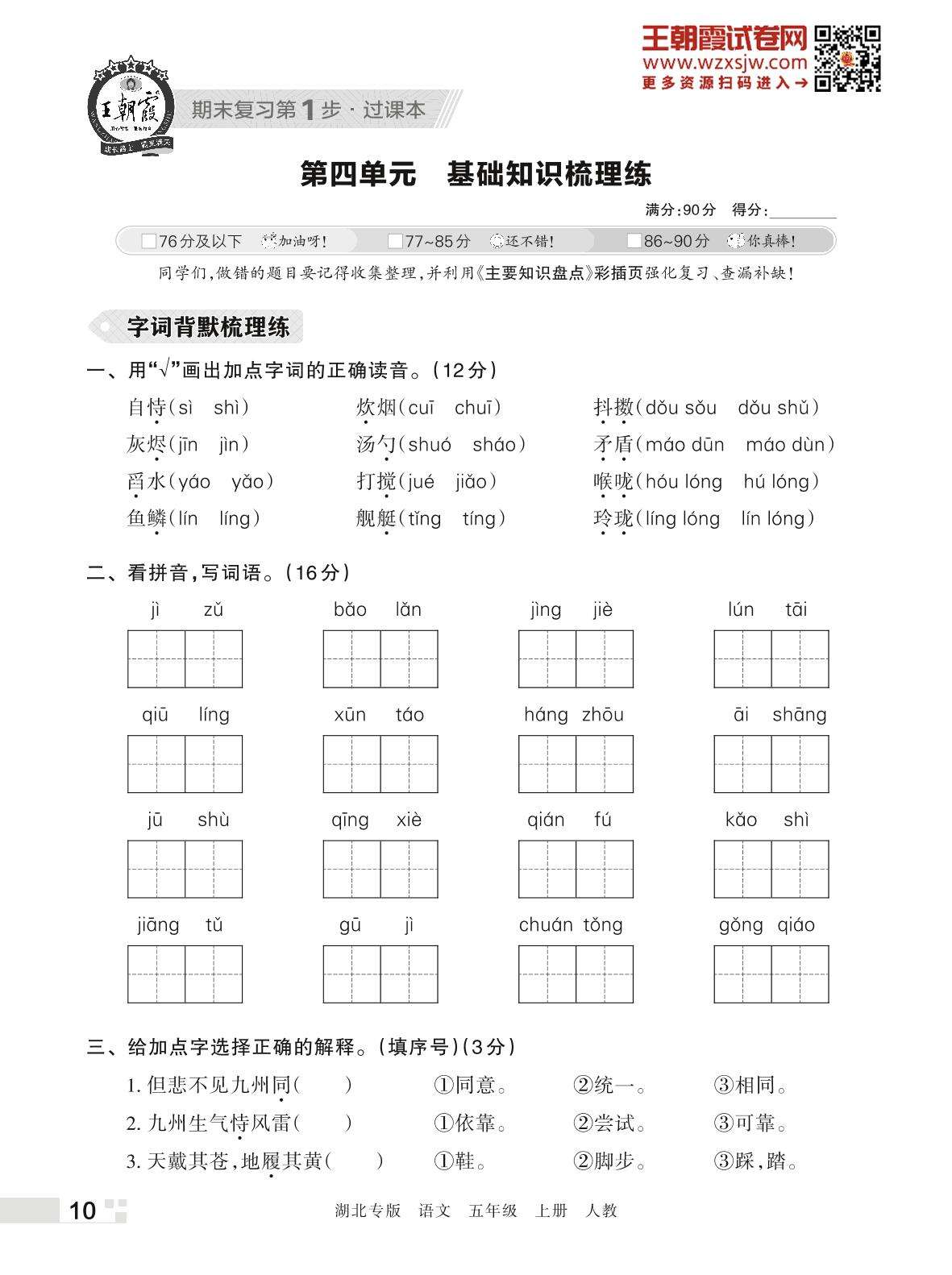 王朝霞期末过课本——第四单元 基础知识梳理练五年级上册语文(人教版)_R221125171134521