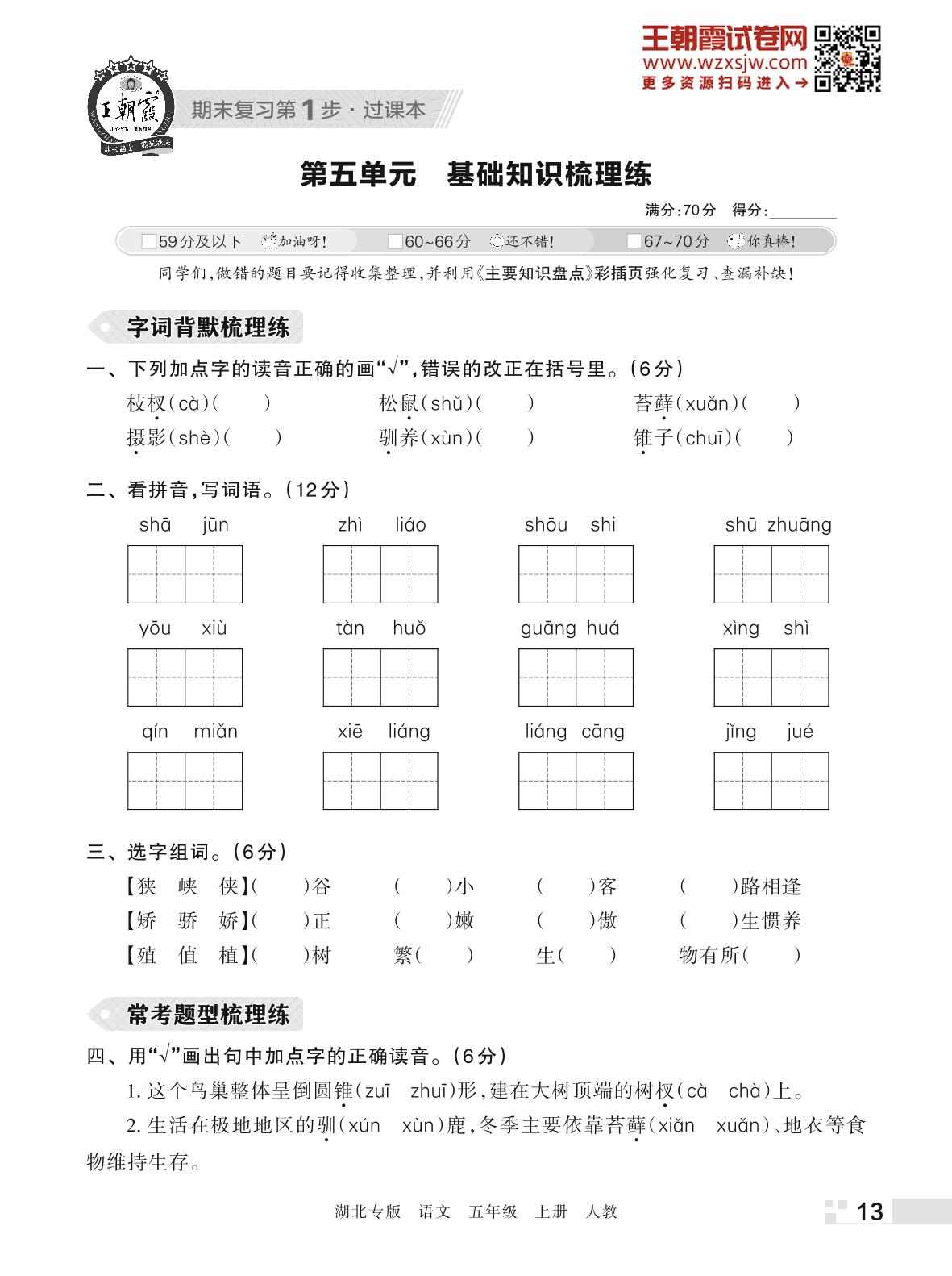 王朝霞期末过课本——第五单元 基础知识梳理练五年级上册语文(人教版)_R221125171135431