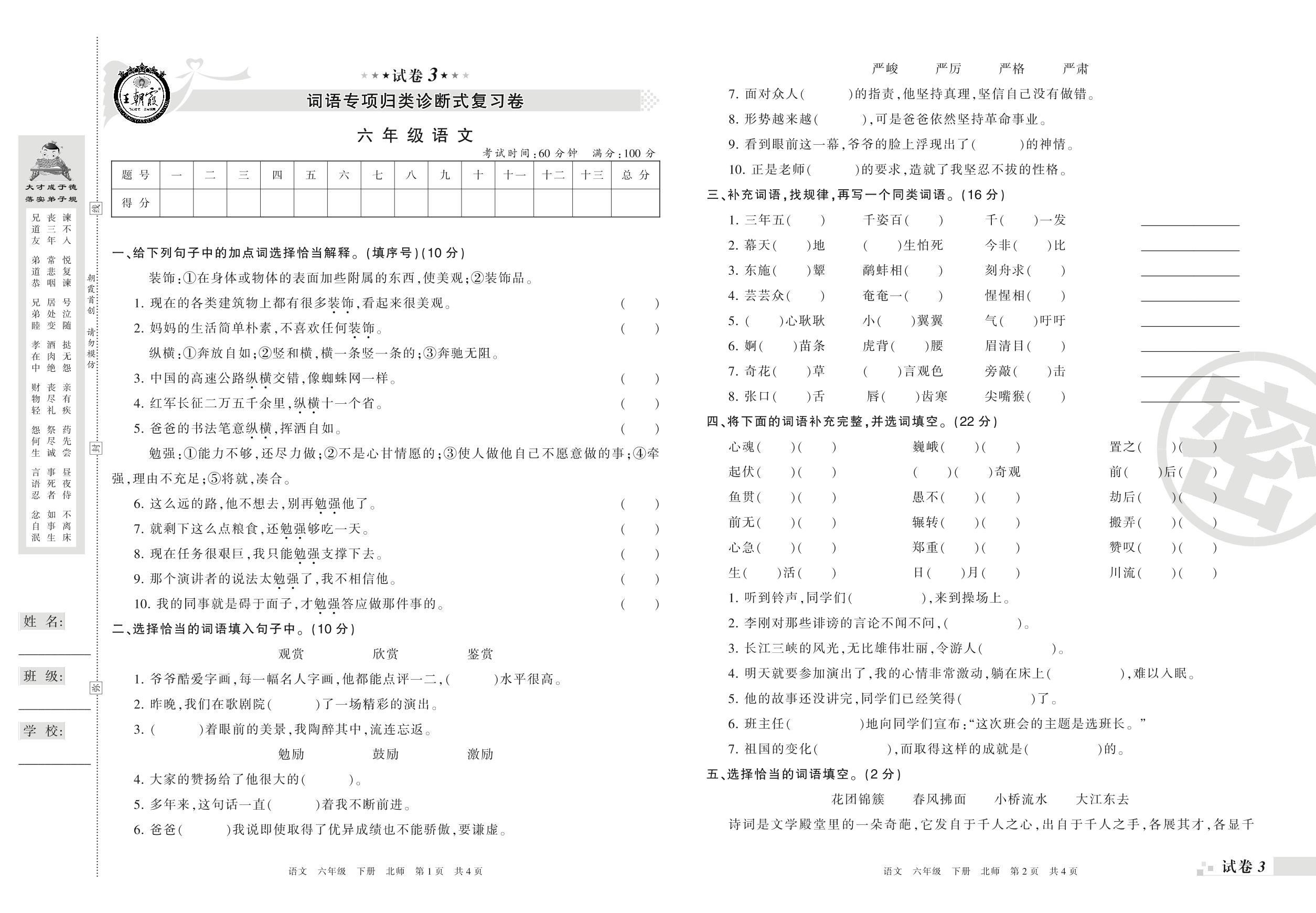 王朝霞期末专项卷——词语专项归类诊断式复习卷六年级下册语文(北师版)_R210802120854【3】