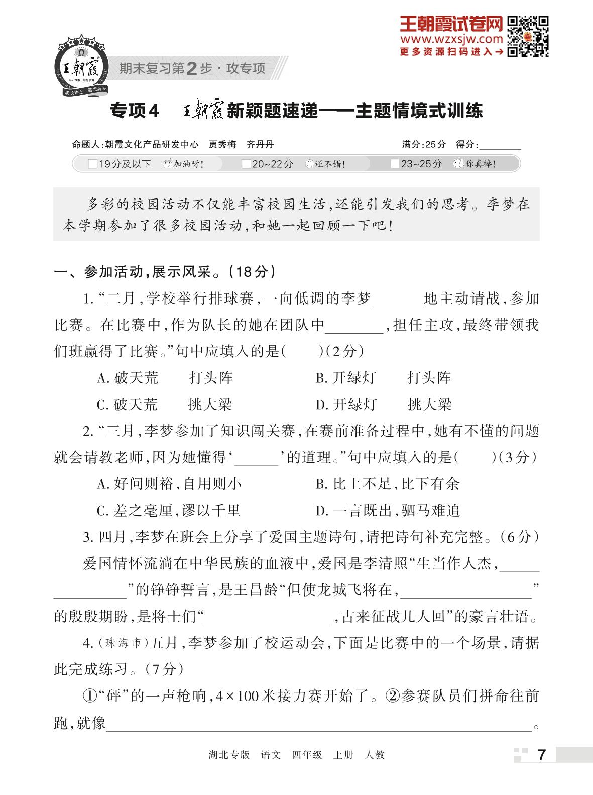 王朝霞期末专项卷——王朝霞新颖题速递:主题情境式训练四年级上册语文(人教版)_R221125172937947【4】
