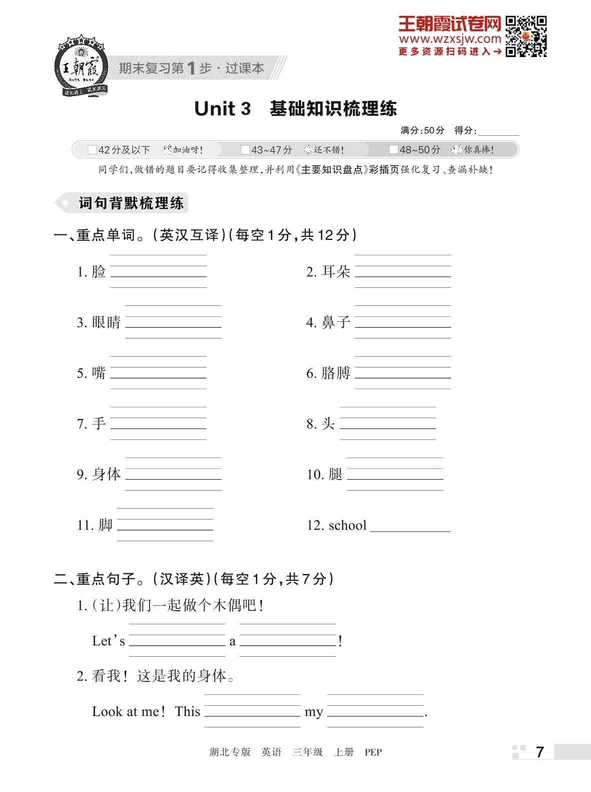 王朝霞期末过课本——Unit 3 基础知识梳理练三年级上册英语(PEP版)_R221125173858824