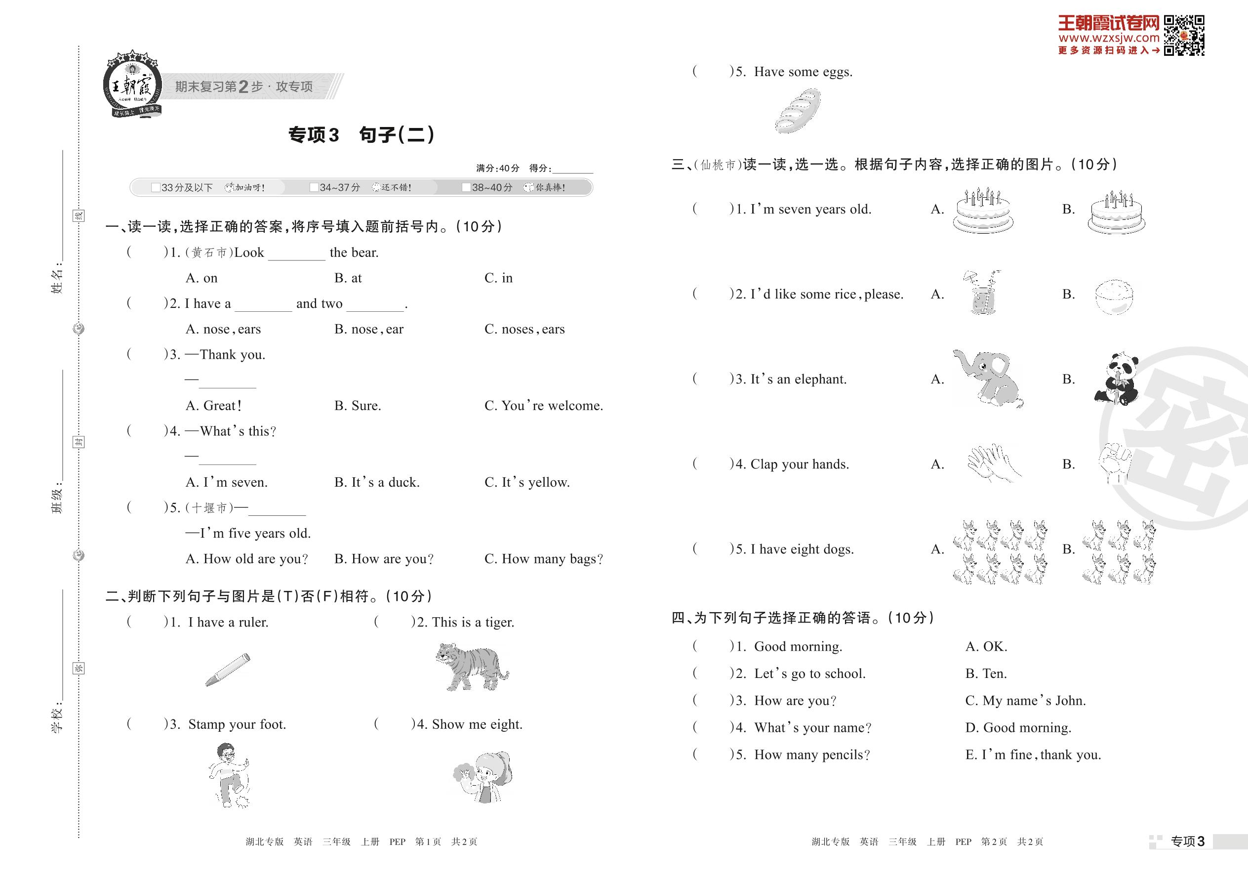 王朝霞期末专项卷——句子(二)三年级上册英语(PEP版)_R221125173859680【3】