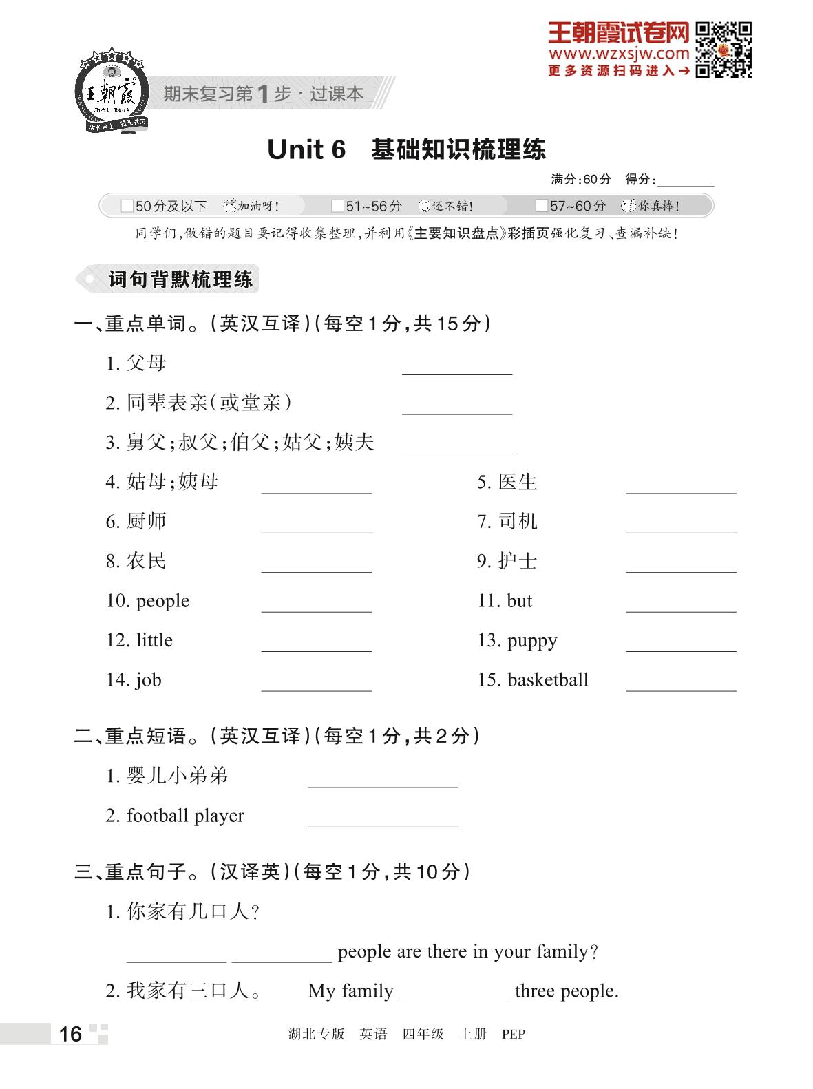 王朝霞期末过课本——Unit 6 基础知识梳理练四年级上册英语(PEP版)_R221125175202825