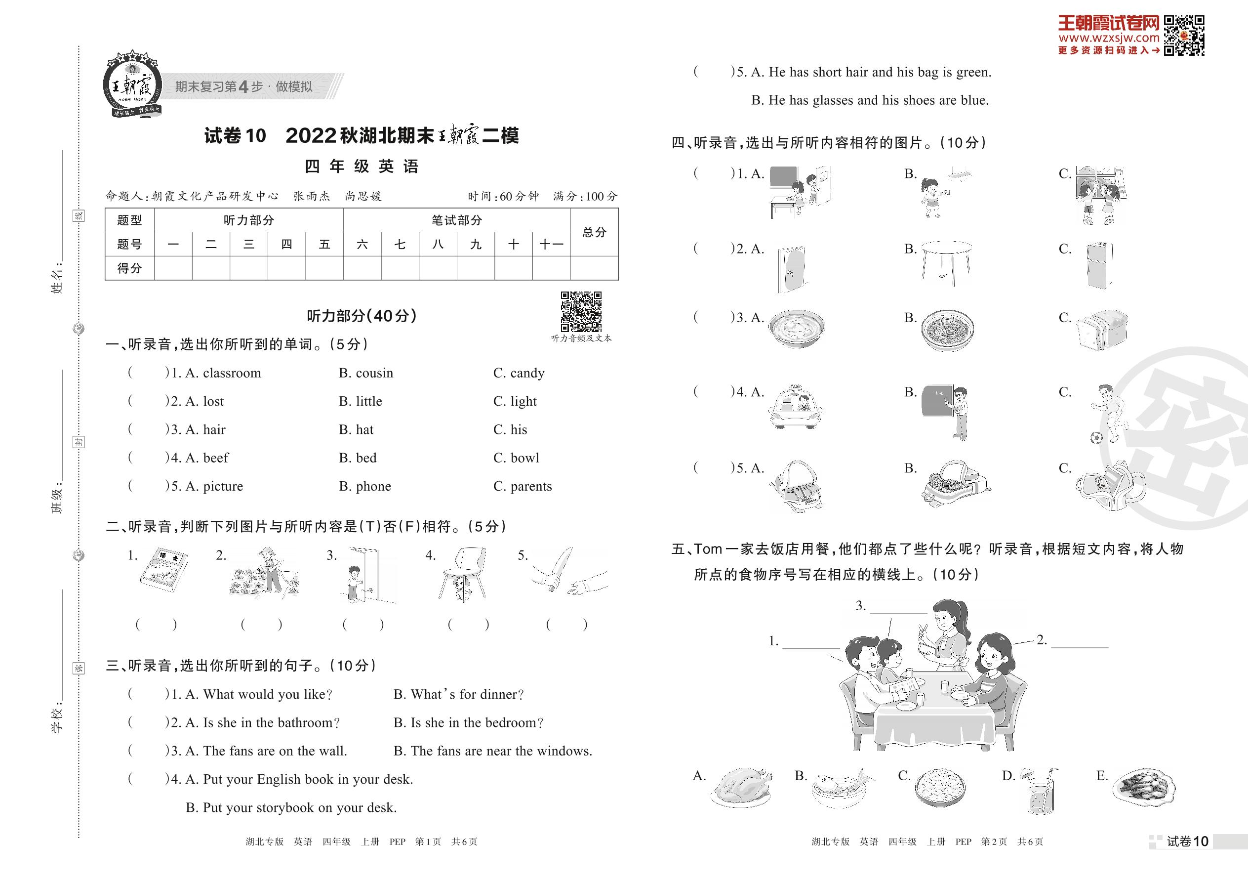 王朝霞期末模拟卷四年级上册英语(PEP版)_R221125175205274【10】
